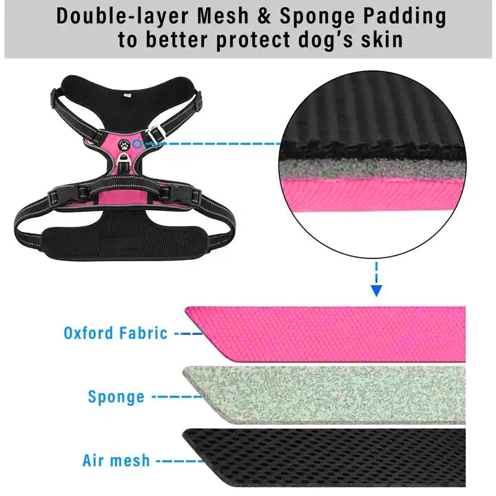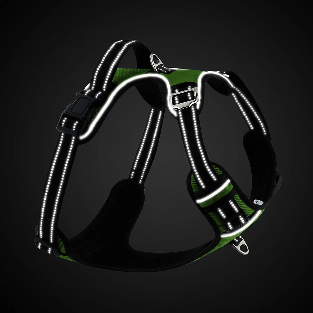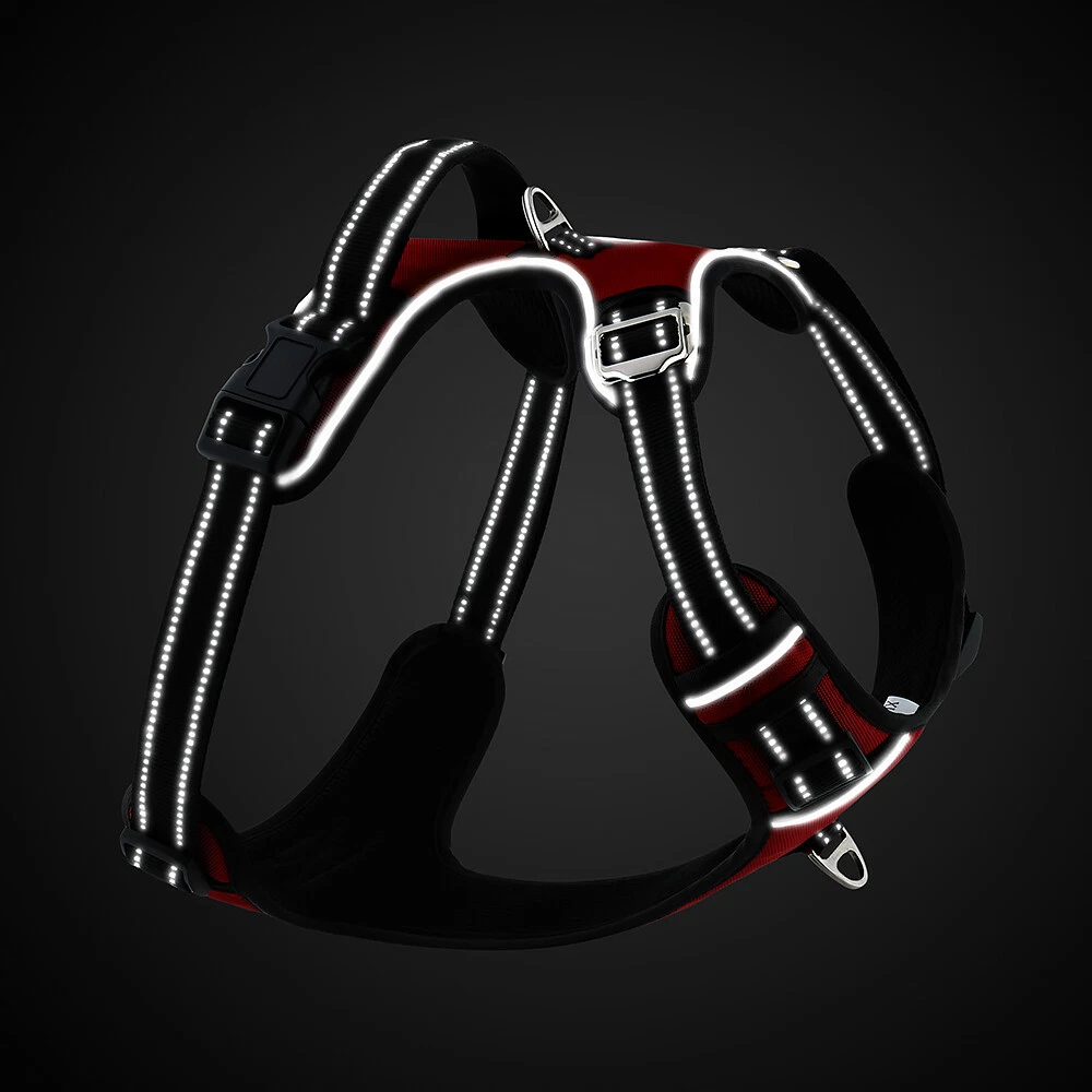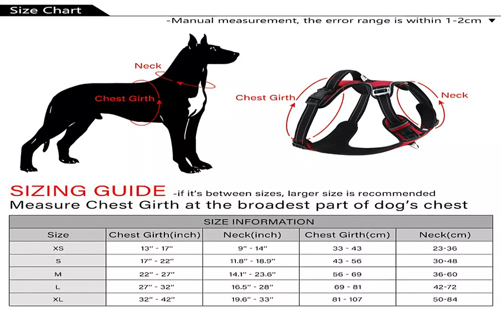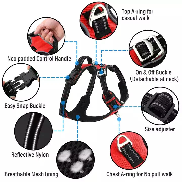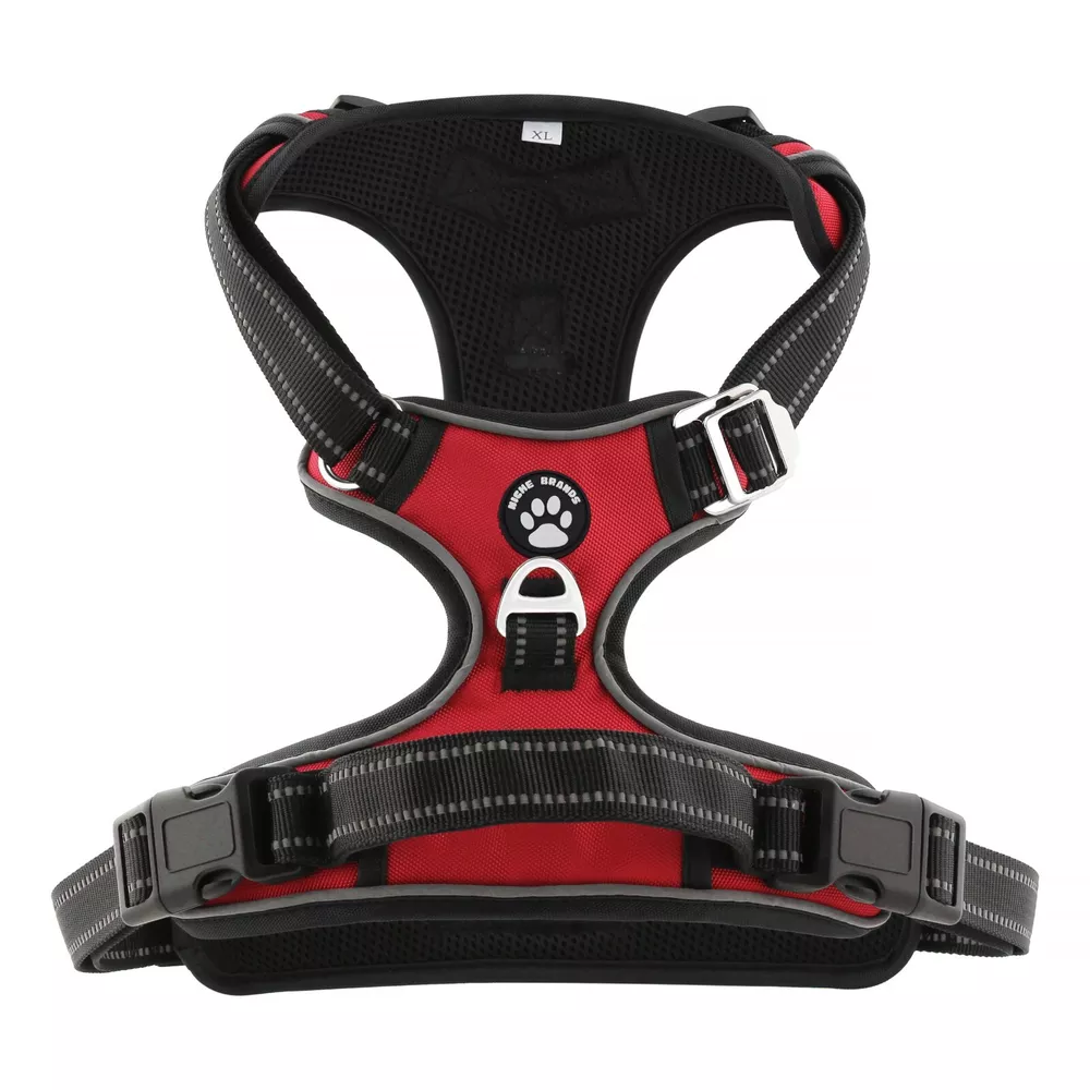 Niche Brands™ No-pull No-Choke dog harness is the ultimate solution for dog owners who want to keep their furry friends safe and comfortable while walking. Made with high-quality materials and featuring a unique design , this harness distributes pressure evenly across the chest and back to prevent choking and pulling on your dog's neck. The padded chest panel and adjustable sizing ensure a secure and comfortable fit for dogs of all sizes, while the reflective strips keep your dog visible in low light conditions. The easy-to-use buckle and leash attachment make it a breeze to put on and take off, even for the most active dogs. Adjustable Weight Pulling Harness Dog Harnesses Best New Year Gift you could give to your Dog Holiday SALE - 5% Leash needs to be purchased separately. 🐶 [ NO PULL - CHOKE RESISTANT ] - NICHE BRANDS Designer non-pull adjustable dog harness with handle features RUSTPROOF Zinc Alloy dual metal D-rings, on both sides of the dog vest. The front D-Ring helps redirect your dog's forward motion, and the back ring is perfect for a casual dog walk, jogging, hiking, training. The four Adjustable straps fit various dogs with different body shapes. With 2 easy buckles on belly straps and 1 more lockable quick release buckle on the neckline, you don’t need to slip over the dog’s head to adjust the straps all the time. 🐶 [ Pet-friendly REFLECTIVE Material ] - Our durable dog vest is made of 1200D Oxford Fabric with sturdy stitching, suitable for long-time use. Breathable padded mesh design keeps air circulation around your dog’s body and protects your dog’s skin during outdoor activities. Reflective/Lighted straps guarantee you a safe and wonderful late-night walk 🐶 [ FIT for All ] - The harness comes in different sizes and fits SMALL/MEDIUM/LARGE/XL size fur friends. Refer the sizing guide for neck and chest girth and get the purrfect size for your furry friend. Large Dog Harness fits even the fluffiest dog 🐶 [ EASE TO USE AND SECURE LOCKING ] - The dog harness with simple design, Front clips and quick snap buckles which make it easy to put on and take off. Locking feature on both snaps makes it more secure, 100% ensures NO accidental detachment. 4 easy size adjustors at neck and chest for easy adjusting to fit your dog perfectly, even with some room of growth. Perfect training vest for daily walking, running, hiking, training, hunting, outdoor adventure and more! 🐶 [ EASY CLEANING ] - Harness material is dust resistant and Machine washable and hence easy for daily use. All metal accessories are rust-proof and provides long term Durability. 🐶 [ DURABILITY ] - Made of durable nylon webbing, enhanced high density nylon oxford, breathable mesh lining and strong accessories including buckle, size adjustors making it the best harness for dog. 🙏 Customer Service - Our customers’ amazing shopping experience is always our Priority. If you have any problems while using our products, please feel free to let us know. Our customer service will effectively solve your problem in 24 hours. Niche Brands pet supplies is a company that is passionate about providing high-quality, unique and innovative products for pets. Our mission is to create a brand that pet owners can trust and rely on for their pet's needs. We understand that every pet is different and has unique needs, which is why we offer a wide range of products that cater to different lifestyles and preferences. Product Description Package includes: 1 x No Pull Dog Pet Harness Adjustable Control Vest Dogs Reflective S M Large XL Shipping Information: Free shipping - Your item Ships Same Day to 1 Business Day