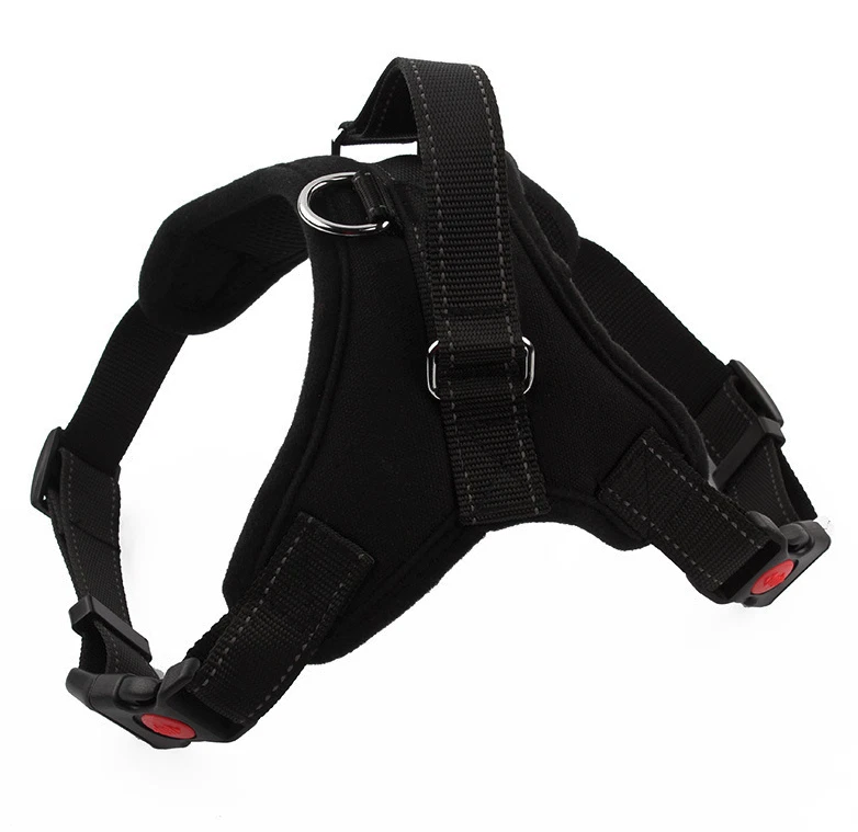 eBay No Pull Dog Pet Harness Adjustable Control Vest Dogs Reflective XS S M Large XXL π Large Dog Harness - Recommended Breeds: Small to Medium to Large Dogs, such as Golden Retriever, Huskie, Labrador, Alaska, German Shepherd, Akita, etc. Please measure the size carefully before purchasing this present for your puppy. Make your puppy stand out with this Classic Black Harness! πΆ No Pull, No Choke - Our non-pulling dog harness is specially designed with metal leash rings for safer dog walks. Perfect for dog training or dogs who tend to pull. The back loop one is great for casual walks, jogging, hiking, etc. π© Easy to Use - This hassle-free overhead harness is easy to put on and take off with its 2 fast-release buckles. Slide the harness over your dog's head, buckle it up, adjust the straps, and here you go! Grab the top handle for additional control. Lightweight and easy to clean. π Fully Adjustable - This adjustable harness features 4 easy adjusting straps around the body. You can use its 2 neck straps and 2 chest straps to create a perfect fit for your dog with some room of growth. No worries about slipping out or choking. πΆ Safe and Comfortable - Your dog will enjoy the daily walk in this comfort dog harness! Made of durable nylon oxford and padded with soft cushion to protect your dog's skin. Breathable air mesh keeps your dog cool during outdoor activities. Super bright reflective strips ensure a safe walk both day and night Specifications: Color: Please Select From Menu Material: Soft 600D Oxford Material, 100% Polyester Fabric Size: XS-3XL Breathable: Durable Breathable Fit: Comfortable Fitted Adjustable Neck & Chest Strap Buckle: Heavy Duty Quick Release Buckles Ring: Metal D-Ring for Leash Attachment or ID Name Tag Handle: Built-In Top Handle Reflectiveness: Reflective Stitching to Increase Night Time Visibility Features Many dogs tend to pull a lot when they are excited to feel the nature or to meet new furry friends. Our harness features No-Pull Design so that you can have better control of your dog by attaching the leash to the Front Clip . Every time your dog pulls, he/she got turned around instead of continuing forward and pulling on the leash. Soon your dog will learn not to pull . The soft and breathable padding will give your dog a snug fit around the whole body, so your dog will feel secured and comfortable while wearing it, making the walk even more enjoyable. The materials that we used to craft our harness are all of premium quality , so your dog will wear it like a champ. Day and night, with our Safety Dog Vest Harness, your outdoor adventure with your furry friend becomes pure fun! Note: Please measure your dog carefully and refer to the size chart before purchasing. Bright Reflective Strips offer good visibility for safe night-time walks Helpful Top Handle helps you gain instant control of your dog The 2 Side Buckles ensure the harness can guard your dog, preventing your excited dog from slipping out Nicely Padded Air Mesh keeps your dog cool and cozy all the time Resistant Oxford Material is ultra-durable and weather-proof for all-season use The 4 Adjustable Straps allow you to create a perfect fit for your furry buddy Safe and Comfortable Your dog will enjoy their daily walk in this comfortable dog harness! Made of durable nylon oxford and padded with soft cushion to protect your dog's skin. Breathable air mesh material keeps your dog cool during outdoor activities. Super bright reflective strips ensure a safe walk both day and night. Design This adjustable harness features 4 easy adjusting straps around the body. You can use its 2 neck straps and 2 chest straps to create a perfect fit for your dog with some room of growth. No worries about slipping out or choking. No Pull, No Choke - Night Time Our non-pulling dog harness is specially designed with metal leash rings for safer dog walks. Perfect for dog training or dogs who tend to pull. The back loop one great for casual walks, jogging, hiking, etc. This hassle-free overhead harness is easy to put on and take off with its 2 fast-release buckles. Dog Harness Sizes Recommended Breeds: Small to Medium to Large Dogs, such as Golden Retriever, Huskie, Labrador, Alaska, German Shepherd, Akita, etc. Please measure the size carefully before purchasing this present for your puppy. Make your puppy stand out with this Classic Black Harness! Slide the harness over your dog's head, buckle it up, adjust the straps, and there you go! Grab the top handle for additional control. Lightweight and easy to clean. Package includes: 1 x No Pull Dog Pet Harness Adjustable Control Vest Dogs Reflective XS S M Large XXL Shipping Information: Your item Ships Same Day to 1 Business Day from our California Location.