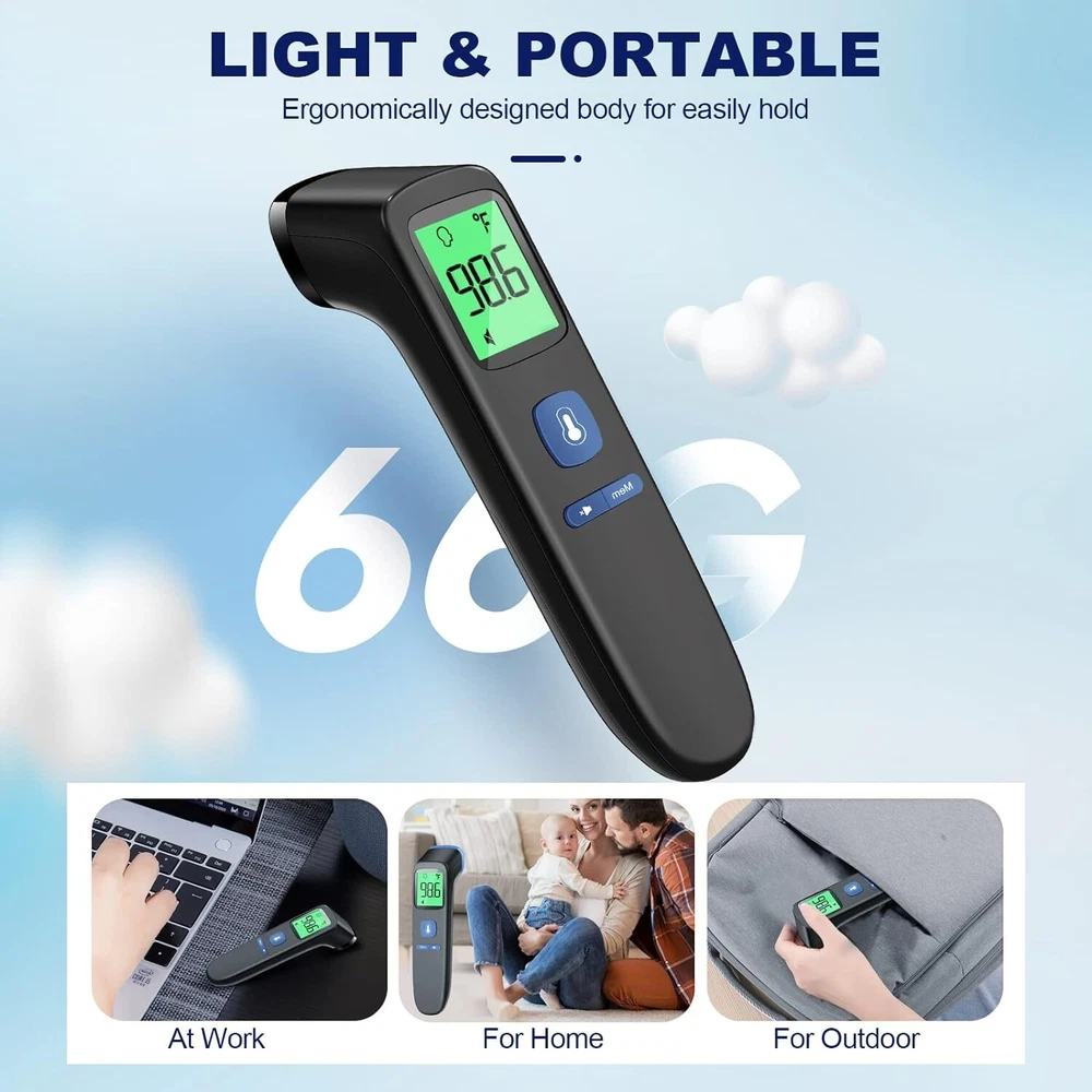 Reliable & Accurate: Goodbaby Thermometer has been clinically tested and found to be a fast and absolutely reliable gadget to use. It is ideal for forehead readings. Fast & Easy Temperatures Readings: Taking your family’s temperature with Goodbaby Forehead Thermometer is as simple as pointing, and pressing a button. It uses infrared technology and can show readings in Celsius or Fahrenheit. Advanced Technology for Excellent Performance: It uses reliable ABS housing materials. Ergonomically designed, the firm grip makes it easy for even naughty children. Multi-mode Thermometer: Goodbaby Thermometer is designed for all ages, infants, and elders. It not only supports the forehead function but is able to take room/object temperature. Trustworthy and Precies: Goodbaby Health Care Thermometer is backed by clinical validated and recommended by the pediatrician. Please contact our friendly customer support team if you have any concerns about the device. Product Description GoodBaby Non-contact Thermometer - Ideal Choice for Adults and Kids —— Enjoy the convenience of digital thermometer today —— —— Fever Alarm & Record 35 Memories —— —— Silent Mode & Multiple Uses —— Taking temperature measurements has never been this fast, accurate, and easy. With GoodBaby Weight 0.15 lb Dimension 1.4x1.6x5 inches Measurement range Forehead:32.0℃-42.9℃ (89.6℉-109.2℉)/Object: 0℃--100℃ (32℉-212℉) Accuracy (Laboraty) Forehead Mode: ±0.2℃(±0.4℉)/ Object Mode: ±1℃ (±1.8℉) Measuring distance 3cm (1.2 inch) Automatic shutdown 12s±1s Operating Temperature 10℃-40℃ (50℉-104℉) Storage Temperature Storage Temperature More Options for No-Touch Thermometer Add to Cart Add to Cart Customer Reviews 4.6 out of 5 stars 100,800 4.6 out of 5 stars 100,800 4.5 out of 5 stars 17,826 4.5 out of 5 stars 17,826 Price $16.99 $ 16 . 99 $16.99 $ 16 . 99 $15.29 $ 15 . 29 $15.99 $ 15 . 99 Fever Alarm ✔ ✔ ✔ ✔ Silent Mode ✔ ✔ ✔ ✔ ℉/℃ Switchable ✔ ✔ ✔ ✔ Battery 2 AAA Batteries Included 2 AAA Batteries Included 2 AAA Batteries Included 2 AAA Batteries Included Measurement Mode Forehead; Object Forehead; Object Forehead; Object Forehead; Object Measurement Time 1 Second 1 Second 1 Second 1 Second