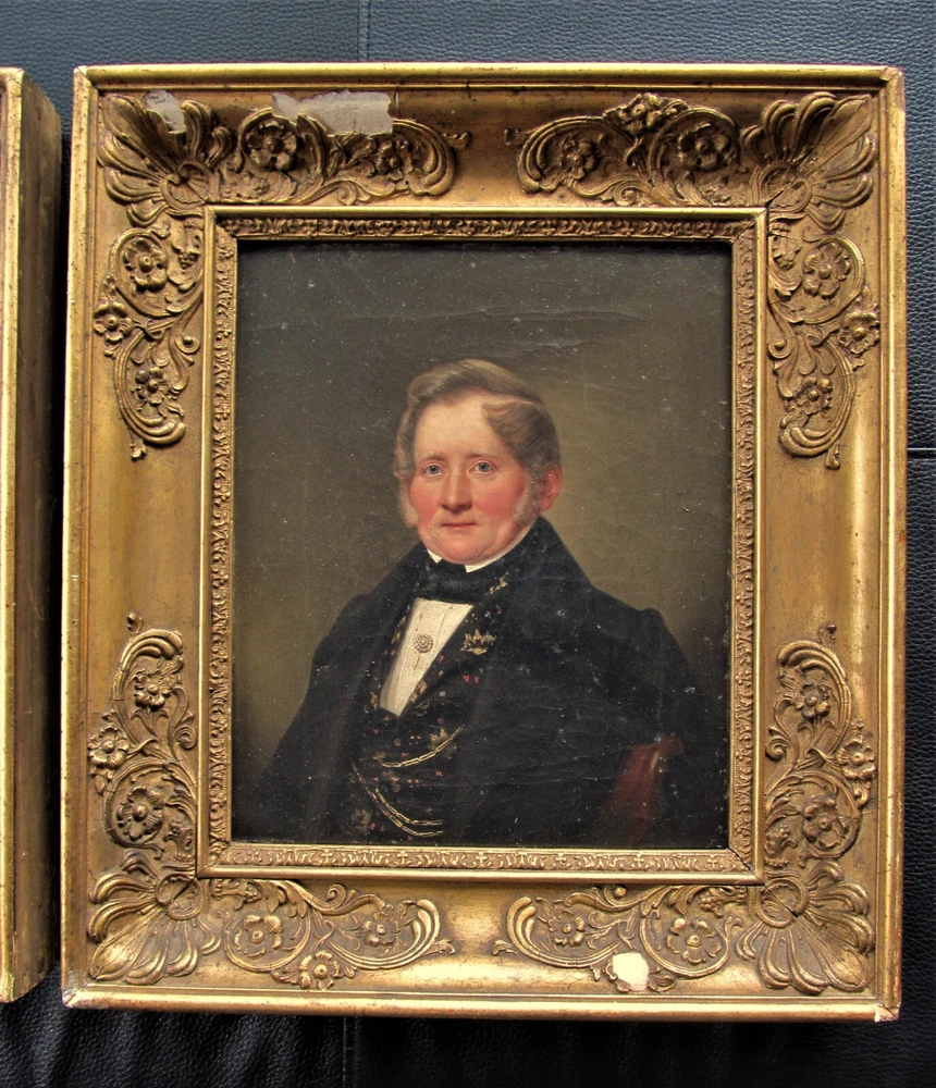 Zwei Adelsgemälde Ölbilder auf Leinwand Portraits alles im originalem Zustand Rahmengröße ca. 36 x 41 cm Zustand siehe auf den Fotos