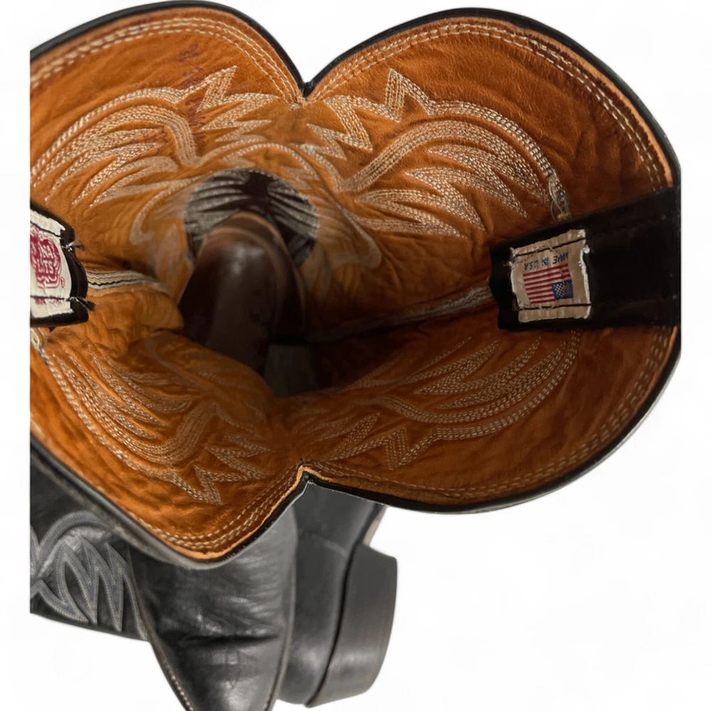 Nocona Leather Western Boots Black Cowboy Biker Wide Embroidered Men's 9.5 EE