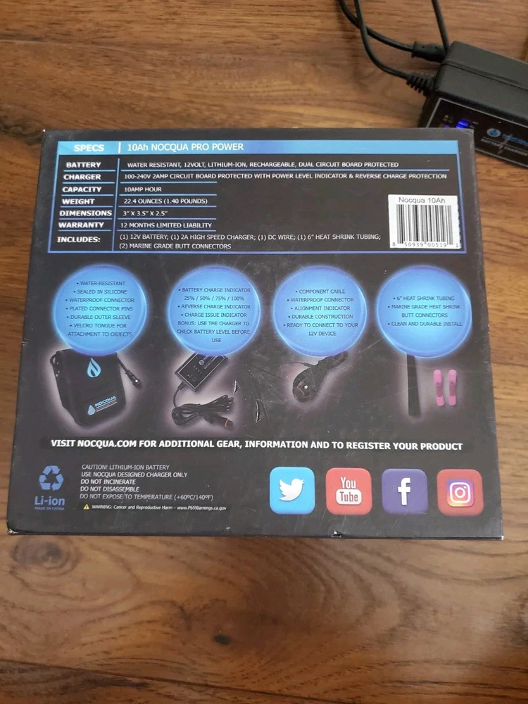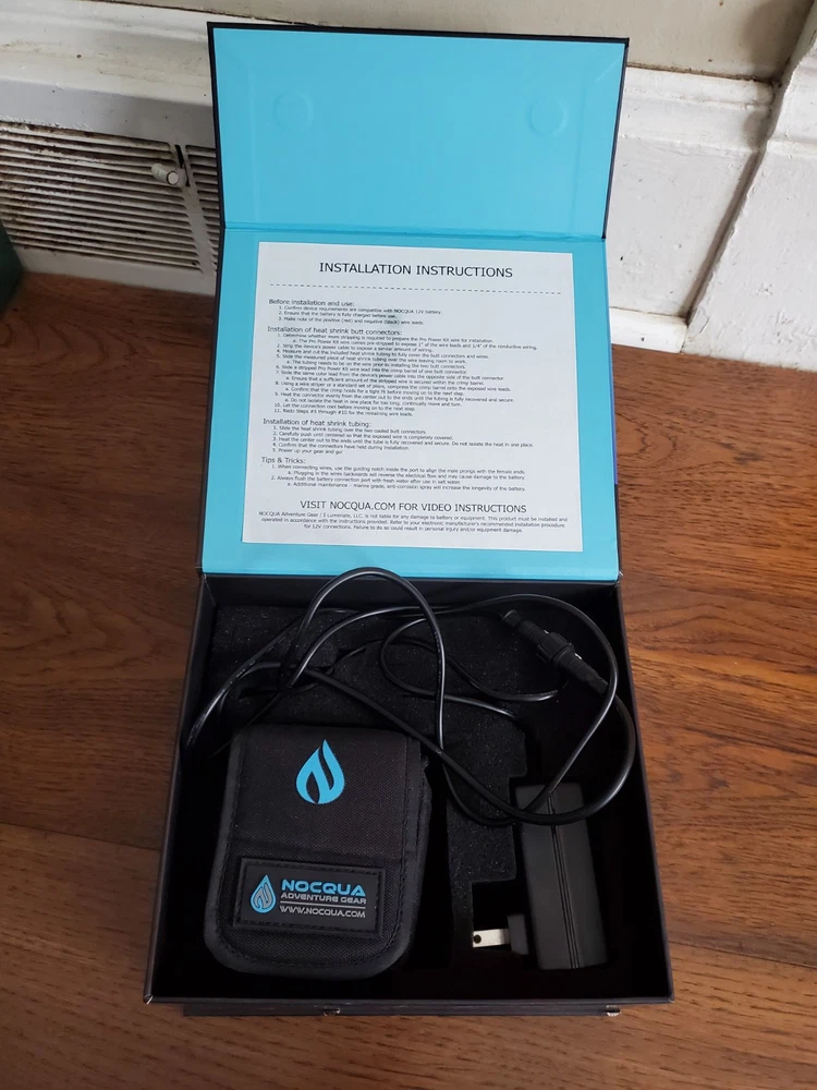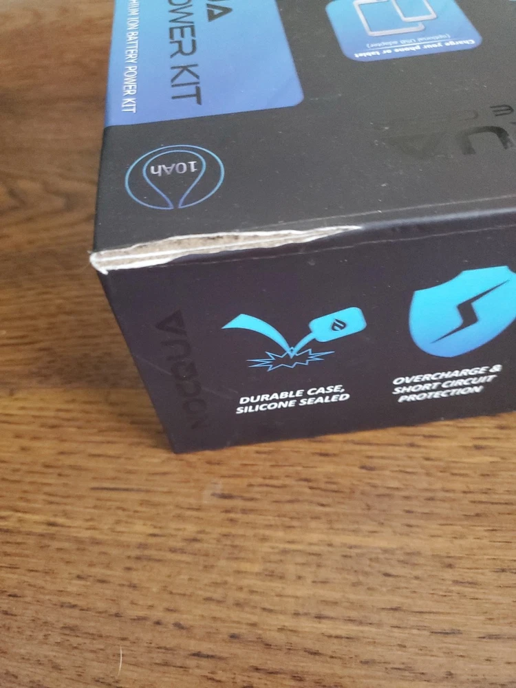 Noqcqua 12 voltage rechargeable battery source electronic device 10ah, rip on the corner of the box in the back, as pictured, no returns. Shipped USPS