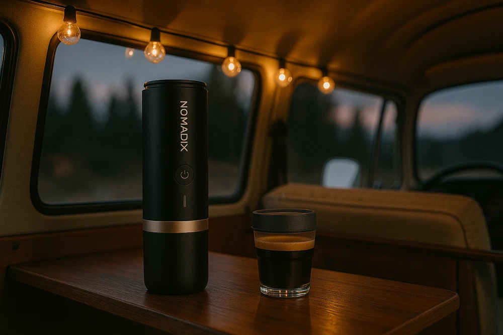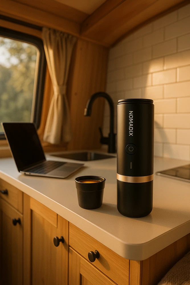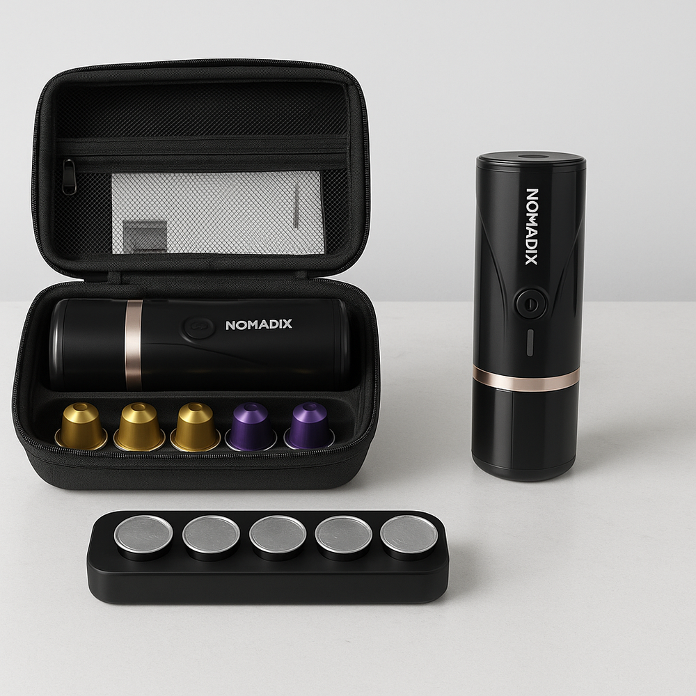 NOMADIX Portable Espresso Maker - Brew Your Freedom Discover the ultimate blend of mobility and luxury with the NOMADIX Portable Espresso Maker . Crafted for adventurers and coffee enthusiasts alike, this 2-in-1 self-heating espresso maker delivers barista-quality coffee wherever you roam. Key Features: 2-in-1 Brewing Compatibility: Enjoy your favorite coffee, whether it’s freshly ground or Nespresso® original capsules. Rapid Heating Technology: Heat water to the perfect 86-92°C (186.8-197.6°F) in under 4 minutes, delivering smooth, rich espresso every time. Unmatched Power & Portability: A robust 7500 mAh battery provides up to 5 cold water brews or over 200 hot water brews on a single charge. High-Pressure Extraction: With an impressive 20-bar pressure, experience rich crema and full-bodied flavor just like your favorite café. Ergonomic & Travel-Friendly: Weighing less than 700g, its compact and IPX4 waterproof design makes it perfect for outdoor adventures. Versatile Brewing Options: Make double shots (14-18g) or single shots (7-9g) effortlessly. Built to Last: Award-winning, ergonomic design that combines durability with a sleek, modern aesthetic. Why Choose NOMADIX? With NOMADIX, every cup tells a story. Whether you’re hiking through the wilderness or taking a break during a road trip, savor the taste of freedom and quality coffee wherever you go. Elevate Your Coffee Experience – Brew, Sip, and Explore with NOMADIX.