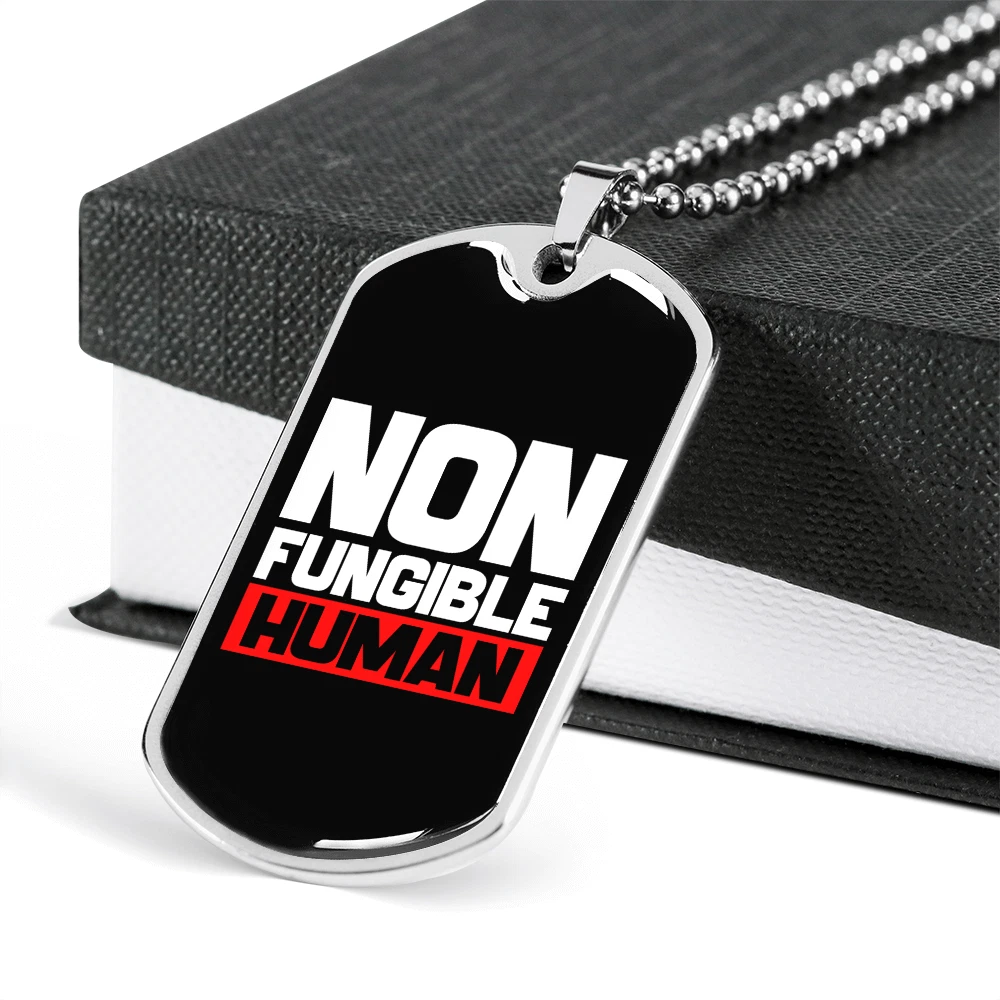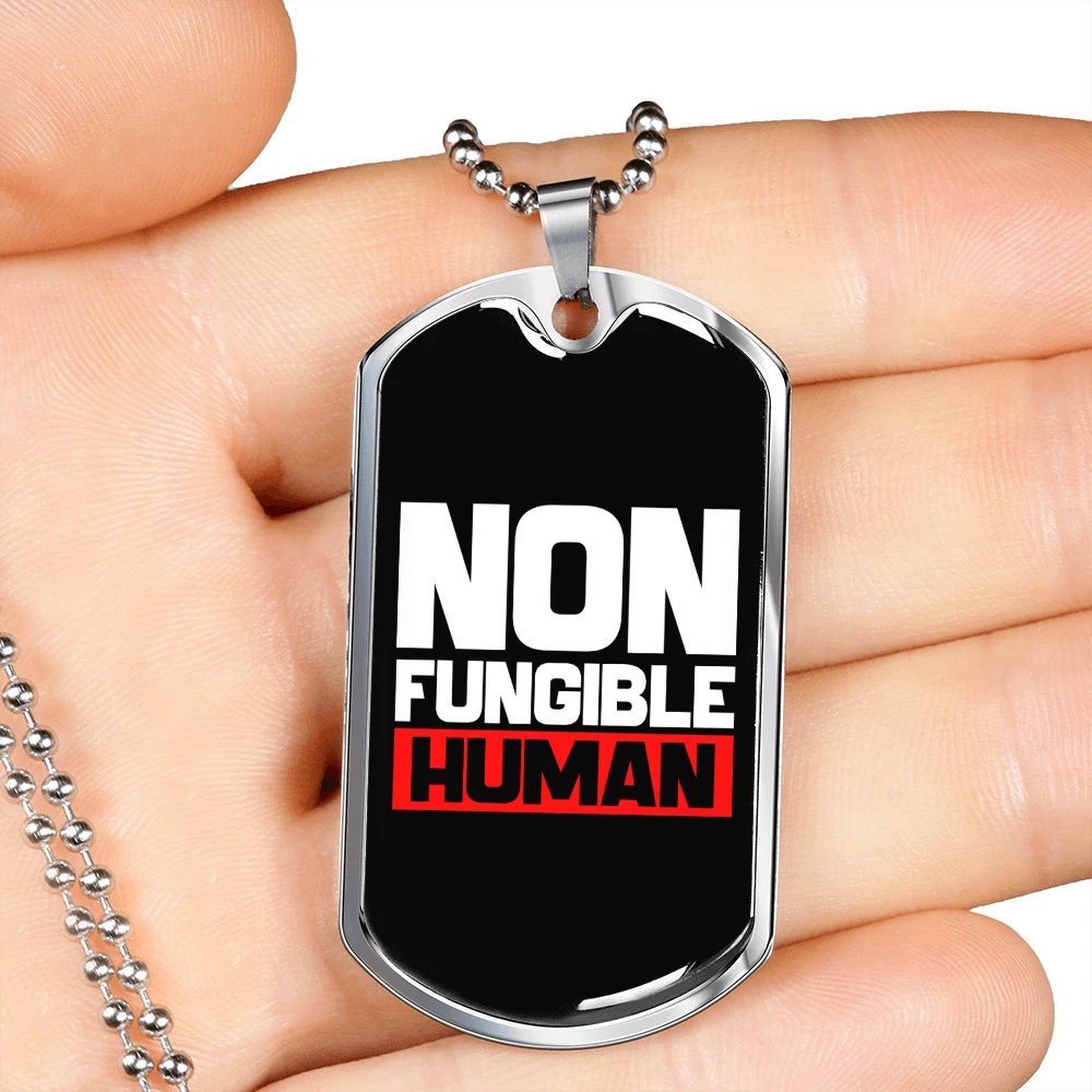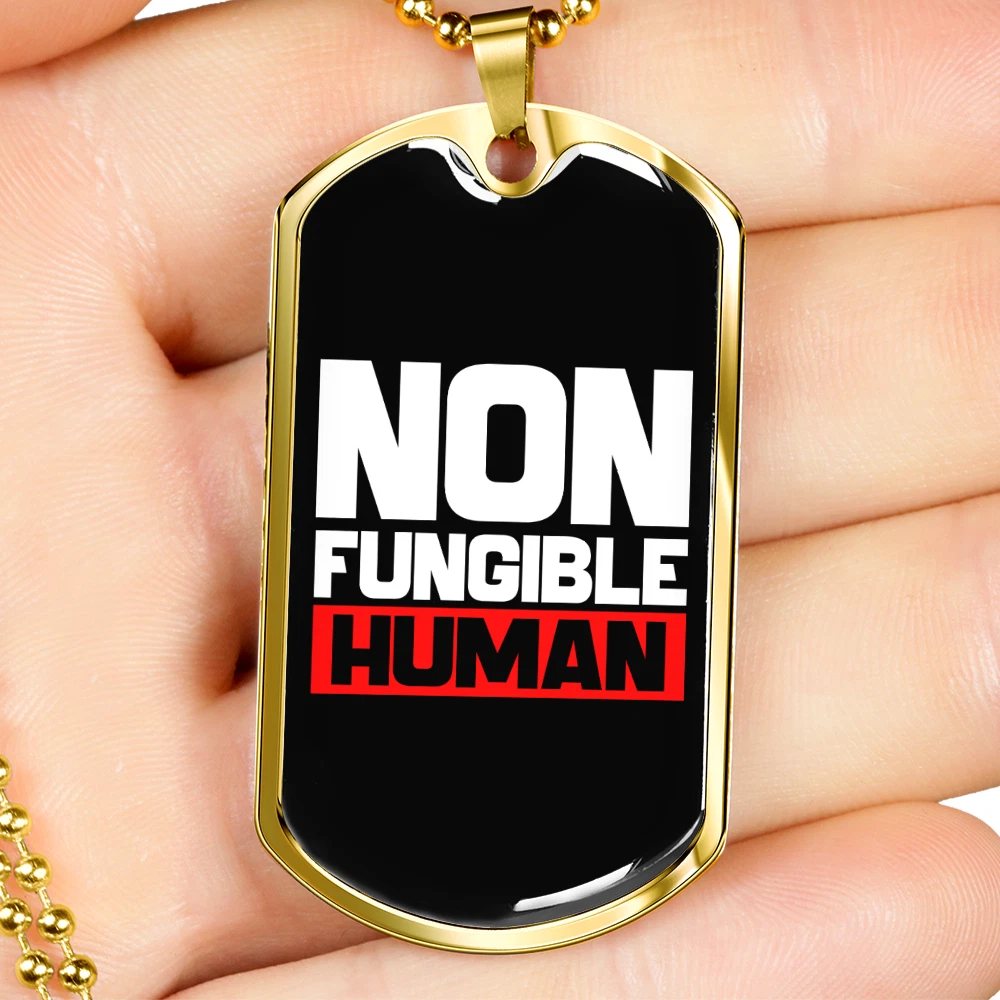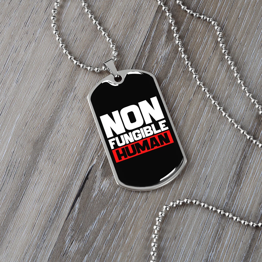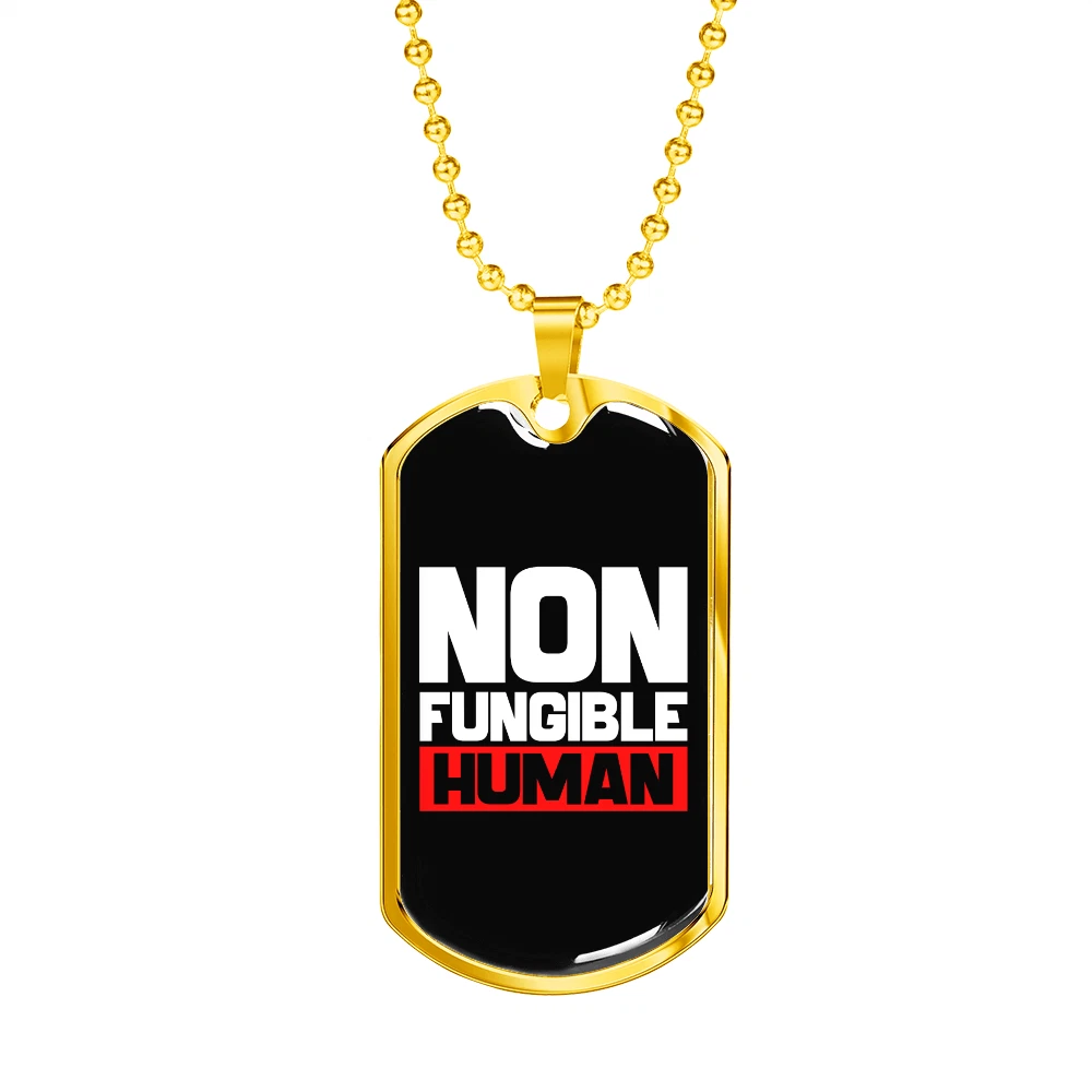 Non Fungible Human Crypto Necklace Stainless Steel or 18k Gold Dog Tag 24" Cha