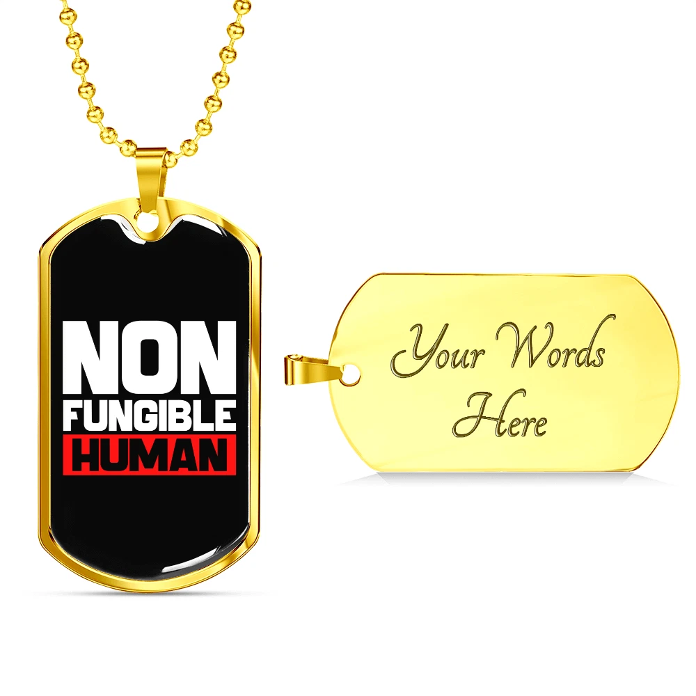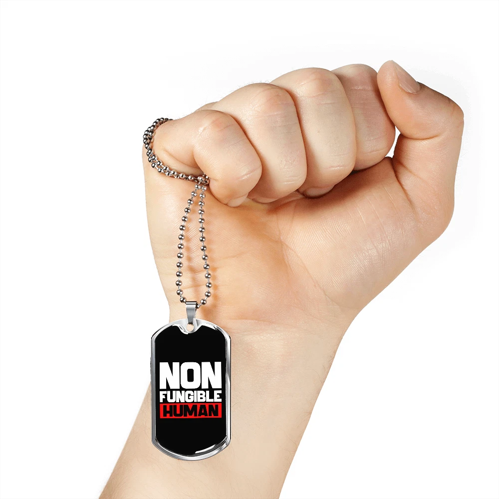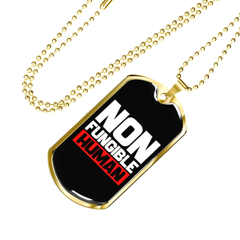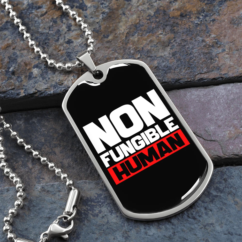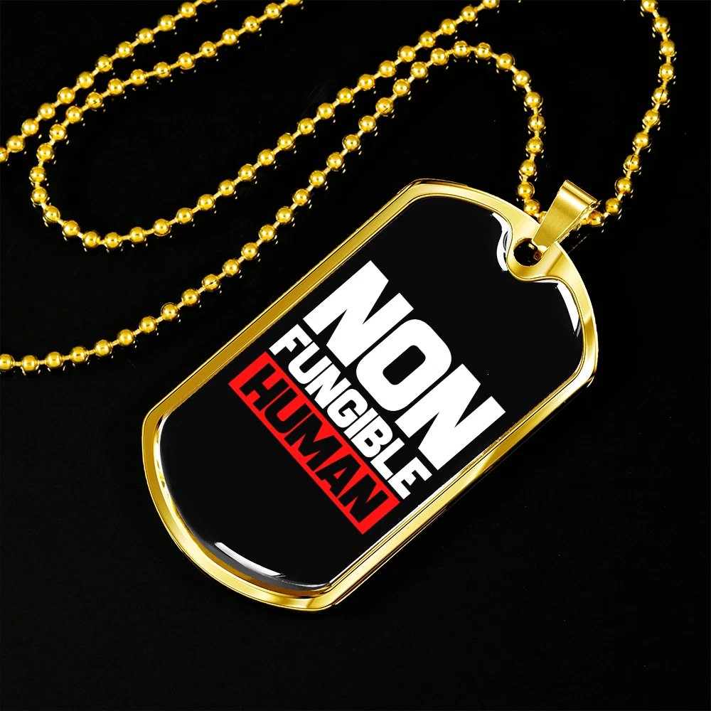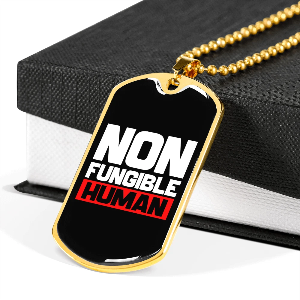 Non Fungible Human Crypto Necklace Stainless Steel or 18k Gold Dog Tag 24" Cha