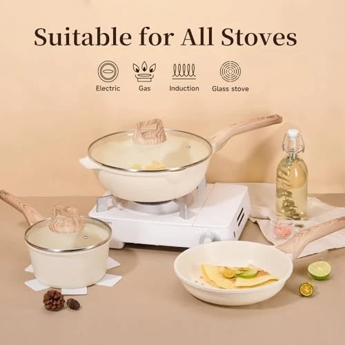 Menu 1. We require immediate payment. 2. We currently accept payment via eBay managed payments only. 3. Once payment is cleared, we will dispatch your shipment within 1-3 business days. Please refer to the "Shipping" tab for more information regarding shipping speed to your destination. Pots and Pans Set Non Stick, White Granite Kitchen Cookware Set, 14 Pcs Induction Cooking Set w/Frying Pans & Saucepans(PFAS/PTFE/PFOS/PFOA Free) Product description 【Premium Quality Design】: The pots and pans set non stick is carefully crafted with high-quality die-cast aluminum. The beige colored body of the kitchen cookware set combines beauty and practicality. The elegant granite non-stick coating not only enhances the beauty of your kitchen, but also ensures that the cookware set is durable and attractive. This beautiful and simple design is perfect for your cooking space, and I'm sure this pots and pans set will be a stylish choice for your cooking 【5 Seconds Easy Cleaning】: Experience the advanced non-stick technology of our new non stick pots and pan set for an exceptionally fast and easy cleaning process. With this nonstick cookware set, you can spend less time scrubbing and more time enjoying your meals, caring for your hands while giving you the best cooking experience possible 【Eco-Friendly and Healthy】: The kitchen pots and pans set is made without any toxic chemicals, (e.g. PFOS, PFOA), so cook with confidence. Use this non toxic cookware set to make every meal healthier for you and your family, so you can enjoy the flavor of your food while focusing on nutrition 【Versatile Compatibility】: This induction cookware set is perfectly compatible with all types of cooktops, including gas, electric and induction. No matter what heat source you use, you can count on the kitchen set for consistent cooking results, making it a must-have for your kitchen 【Gift Preferred】: I am sure this non stick cookware set will be extremely popular whether it is a housewarming, wedding gift or a gift for friends and family. It is a versatile and practical gift for anyone, whether you are a beginner or an expert cook 【Dedicated Customer Service】: We value your experience with the cookware set. Our attentive customer service team is always ready to assist you with any inquiries or questions to ensure that this product meets your expectations PLEASE MESSAGE US IF YOU HAVE ANY OTHER QUESTIONS, AND MANY THANKS FOR READING ALL OF THIS. Copyright ©#. All Rights Reserved.
