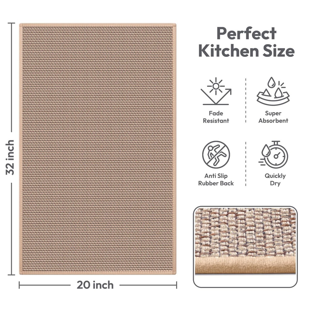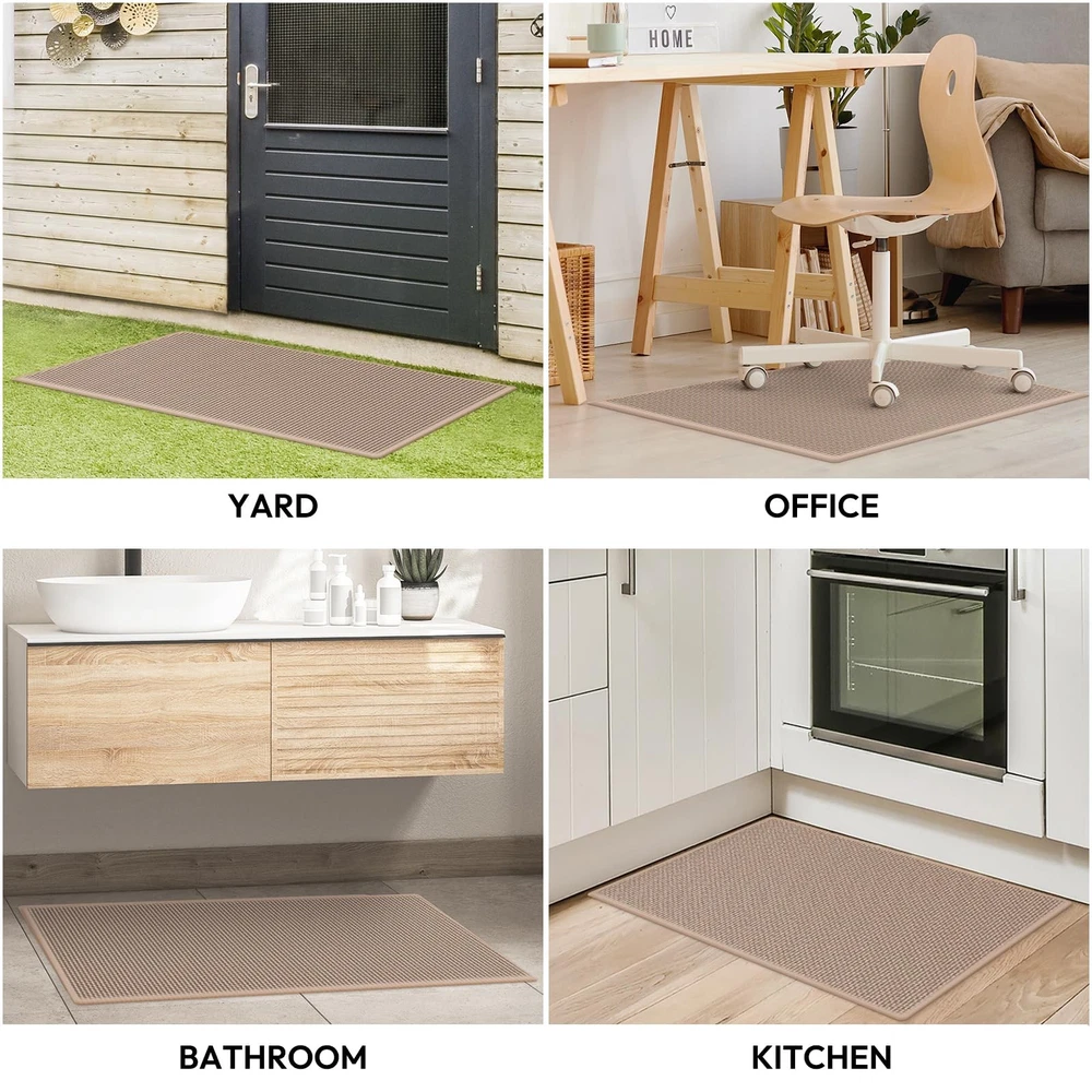 Superior Kitchen Mat Creating an Exquisite Kitchen Life Not only do they offer a comfortable place to stand while cooking, but they also add character and warmth to any kitchen. Size & Color Variety Our kitchen mats for floor come in a variety of sizes and colors to provide you with ample choices no matter what your preference is. We offer two colors - classic brown and elegant grey which are suitable for a range of different aesthetic choices. Additionally, we provide five different sizes, whether you need a mat for a small kitchen or a large one, we've got you covered with our diverse options. 5 Size & 2 Colors Available Multi-Purpose & Non-Slip Design Our kitchen mats are designed to be versatile and equipped to handle a range of purposes. They are sturdy and can be used in a variety of places like kitchens, living rooms, and laundry rooms. No matter where you place them, the mats have a firm grip that ensures they won't budge. The non-slip design offers you safety and stability, particularly when working for long periods in the kitchen. Classic Style & Home Decor Our classic style kitchen rugs are not only functional but also serve as home decor and ambiance enhancers. With a sophisticated design that complements your kitchen or home decor, they are the perfect blend of style and purpose. Place one in your kitchen or in front of your stove to create a comfy and inviting atmosphere in the most-used rooms in your home. Premium Kitchen Mat:our kitchen mat is made of high-quality chenille and premium rubber materials that will last for years;The kitchen mat can withstand the toughest conditions with ease and provide you with the comfort and functionality; Super Absorbent: The kitchen mats have an excellent absorption ability that can absorb spilled water and oil instantly. You won't have to worry about stains with our kitchen mats; Our kitchen mats are designed to absorb any liquid that comes their way, leaving your kitchen spotless every day; Anti-Slip: Our kitchen rug features a rubber backing that provides unparalleled slip resistance. Safety is a top priority, and we've made sure that our rug is slip-resistant to keep you, your family,and guests safe; Multi-Purpose: Our anti fatigue mats for kitchen floor are very versatile.;They can be used in kitchens, doorways, corridors, laundry room, porch, living room, back door, garden, garage, and other areas around the house; Different sizes can be selected to be placed in different areas of the home, to coordinate your decor; Easy To Clean: Our farmhouse style kitchen rugs are resistant to dirt and debris. Simply wipe dirt off with a damp cloth or use a hand-held vacuum to clean the dirt and dust;The materials used in the making of the mat can withstand multiple washes without losing their quality or shape.