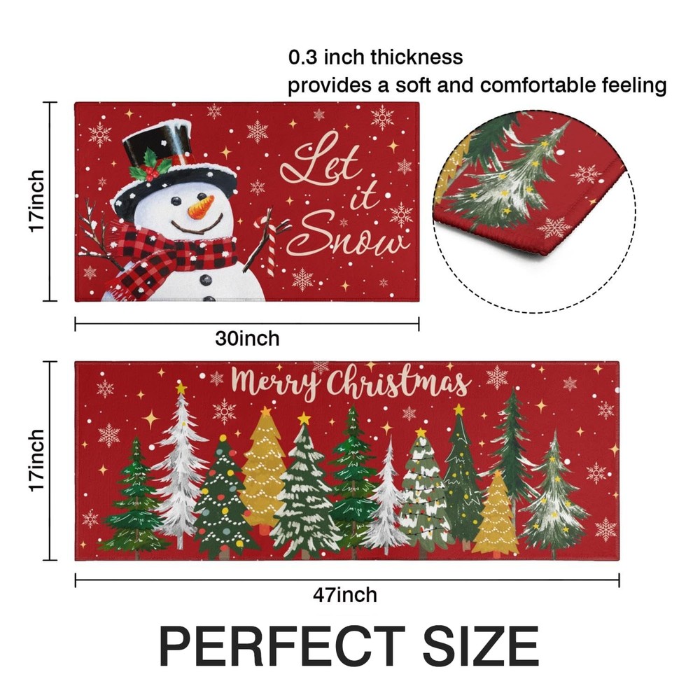 Christmas kitchen rugs,Christmas kitchen mats,Christmas kitchen rug.Christmas kitchen mat,Christmas rug,Christmas mat,Christmas kitchen,Christmas decor,Christmas kitchen decor Christmas Kitchen Decor: kitchen rugs and mats set of 2, 1 17 x 47 inch christmas kitchen runner rug, 1 17 x 30 inch rectangular rug. This Christmas floor mat perfectly combines a snowman and a beautiful Christmas tree, with falling snowflakes and the words "merry christmas" and "let it snow", with a red background, the beautiful farmhouse style design matches your Christmas home decor perfectly. This is your indispensable kitchen decoration for Christmas and winter Comfortable Snowman Christmas Standing Mat: The 0.3 inch standing mat provides ample support for your feet and knees when standing for long periods of time. Perfect for in front of the kitchen stove, counter/workbench space, hair salon, restaurant, office, front desk, laundry room and other places where people have to stand for long periods of time Absorbent and Non-slip Christmas Kitchen Rug: The comfortable christmas mat is made of crystal velvet material with non-slip particles on the back, absorbent and non-slip, and can be placed on dry floors. It can be placed in any environment under the door, not too thick and bulky to avoid tripping Multiple Occasions Christmas Rug: This winter red Snowman Christmas kitchen mat is not only suitable for kitchen, bedroom, living room, but also for doorway, sink, bathroom. It can be used as kitchen mat, bathroom mat, bedroom mat. It is the first choice gift for holiday, christmas Easy to Clean:Christmas kitchen mats and rugs are easy to care for, use a handheld vacuum to remove surface dust or machine wash in cold water for deep cleaning, no bleach, no wringing, lay flat to dry or tumble dry at low temperature for best results