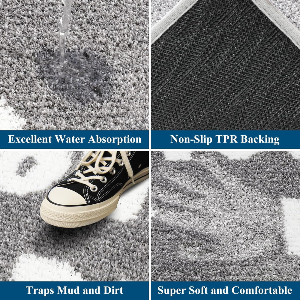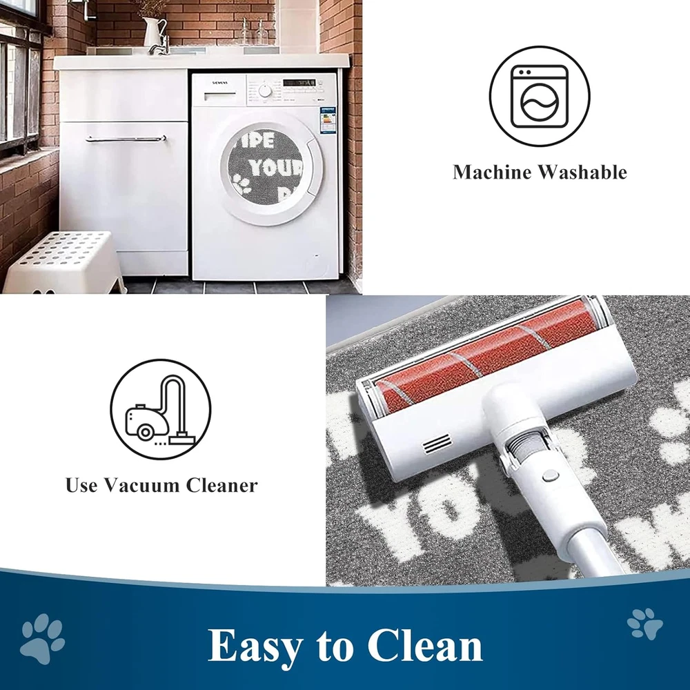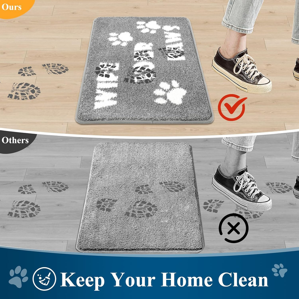 This mat is a total game-changer for my entryway! It catches all the dirt and mud perfectly, stays firmly in place, and the cute dog paw design adds a fun touch. Super easy to clean and looks great in grey and white. Highly recommend!