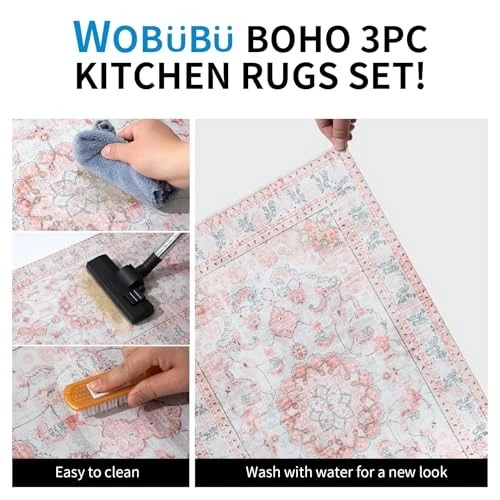Return Policy Fast Delivery Trusted seller Rubber Kitchen Rugs Sets of 3 Non Slip Washable Mats Set for Home Kitchen Floor Decoration (Pink, 20"x32"+20"x48"+20"x59") Product Description 3 Piece Kitchen Rugs Set:Package include 3 Piece Kitchen Rugs and Mats, measure 20"x32"+20"x48"+20"x59",0.14" thickness never stuck the door, perfect for both indoor and outdoor use. Comfort and Soft Kitchen Carpets:This kitchen mat set is made of higher quality fabric material, soft and comfort to walk on, absorb water and dry quickly, durable & quality have both. Non Slip Kitchen Mat Sets:Durable matrix texture rubber backing increase friction, keep kitchen runner carpets mat firmly, it won't slide. Easy to Clean:Clean our washable rug set with vacuum cleaner normally, depth clean with machine wash and dry naturally. Versatile Rug Sets: Kitchen rug sets are widely used in Kitchen Farmhouse, Laundry Room, Hallway, Entryway, Office, great choice for your home décor and will add a touch of elegance to your home. Shipping Returns Payment Shipping Shipping is FREE to all addresses other than APO/PO boxes in the lower 48 states. All our stock ships from US-based warehouses. Shipped via USPS or UPS (depending on location and package weight) Unless stated otherwise, all orders will ship within 24-72 hours of your payment being processed. Check our feedback to see the great reviews of FAST shipping we offer. Returns Seller does not accept returns Payment We currently accept payment via eBay managed payments only. Once payment is cleared, we will dispatch your shipment within 1-3 business days. Please refer to the "Shipping" tab for more information regarding shipping speed to your destination.