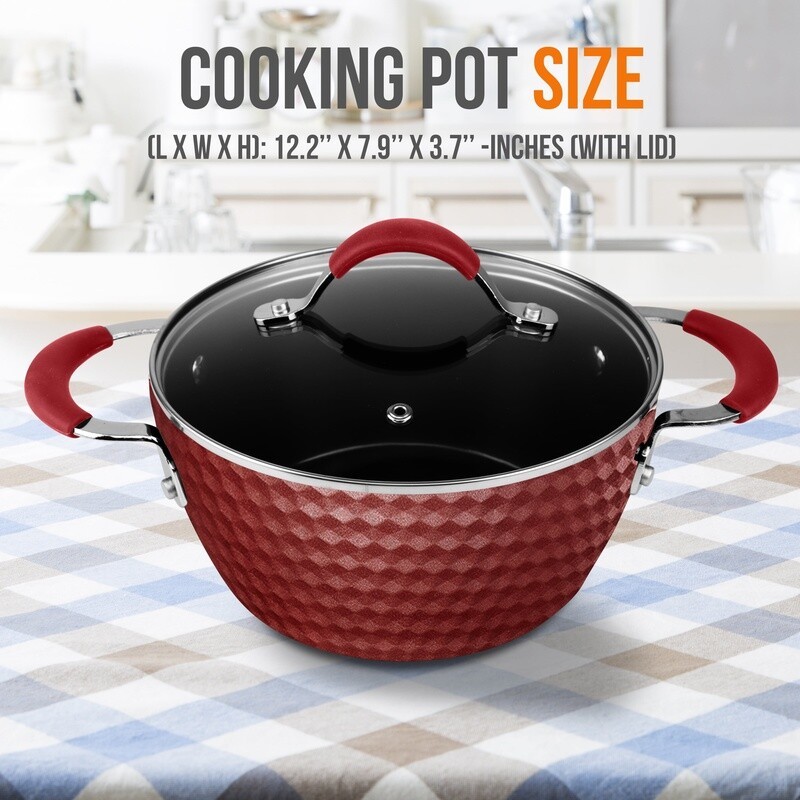 Elegant & Sleek Diamond Pattern - Stylish Modern Kitchen Cookware Design - Durable & Long Lasting Non-Stick Coating - Heat resistant Lacquer Outside - Induction Compatible - Stain-Resistant & Easy-to-Clean - Safe for Gas, Electric, Ceramic & Induction Counter Cooktops