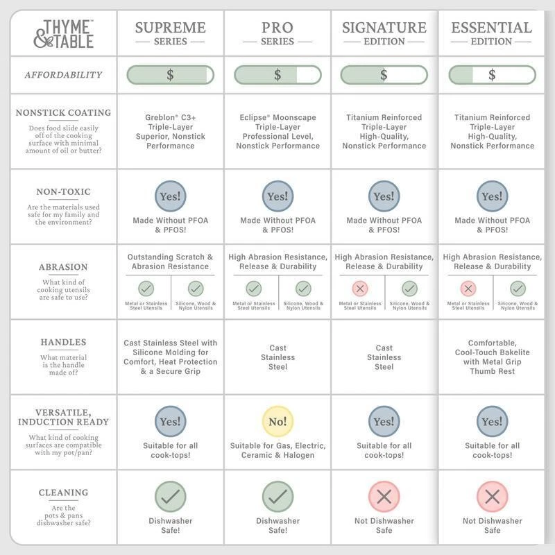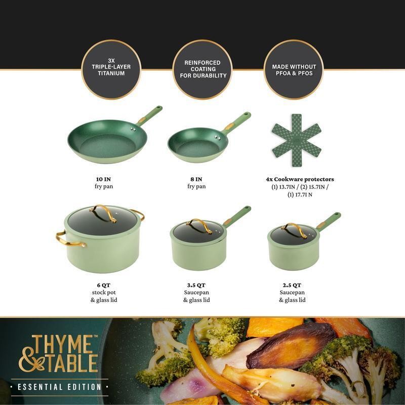 You may also like 18 Piece Nonstick Cookware Set Kitchen Essentials Dishwasher Safe Utensils Red 53.3 USD 56.11 USD Free shipping 5% off 10 Piece Nonstick Cookware Set Dishwasher Safe Riveted Cool Handles Glass Lids 61.94 USD 65.2 USD Free shipping 5% off 12-Piece Pots Pans Cookware Set Nonstick Toxin-Free Ceramic Dishwasher Safe NEW 105.59 USD 111.15 USD Free shipping 5% off 11pcs Nonstick Cookware Set Ceramic Coated Induction Gas Safe Easy Clean New 64.02 USD 67.39 USD Free shipping 5% off Stainless Steel Cookware Set 14 Pc Induction Compatible Dishwasher Safe Kitchen 112.75 USD 118.68 USD Free shipping 5% off Nonstick Cookware Set 14 Piece Soft Grip Handles Straining Lids Even Heat Base 94.86 USD 99.85 USD Free shipping 5% off 7 Piece Nonstick Cookware Set Carbon Steel W/ Glass Lids & Bakelite Handles New 47.5 USD 50.0 USD Free shipping 5% off 15-Piece Non Stick Cookware Set Colorful Heat Resistant Lacquer Dishwasher Safe 87.77 USD 92.39 USD Free shipping 5% off 12 Pc Non Stick Cookware Set Pots Pans W/ Lids Handles Cooking Tools Kitchen New 94.92 USD 99.92 USD Free shipping 5% off 10 Pcs Non Stick Ceramic Cookware Set Aluminum Pots & Pans Dishwasher Safe New 84.22 USD 88.65 USD Free shipping 5% off 20 Piece SetNonstick Cookware Fry Pot Slow Cooker Dishwasher Safe Kitchen Red US 106.59 USD 112.2 USD Free shipping 5% off 10 Pcs Clean Ceramic Nonstick Cast Aluminum Cookware Set W/ Heart Knobs Durable 93.81 USD 98.75 USD Free shipping 5% off Introducing the Thyme & Table Nonstick 12-Piece Granite Cookware Set, Green, from our Essential line, designed to offer excellent value for cost-conscious customers. Enjoy high-quality cookware at an affordable price, making every meal preparation a delightful experience. Included with this set is and 8- inch and 10”- inch Fry Pan perfect for searing or sautéing, 6QT Stock Pot with Lid ideal for stews or pastas, a 3. 5QT and 2. 5QT Saucepan with Lids which provide different capacities for every dish, and 4 Cookware Protectors designed to help maintain the pristine condition of your cookware set over time. Durability: Built to last with premium aluminum and stainless steel, ensuring durability and reliability. Crafted with soft grip handles featuring a metal grip thumb rest for easy maneuvering while cooking. Non-Stick Coating: Non-Stick Coating makes for effortless food release and quick cleanup, ideal for busy cooks who value convenience. Versatility: Suitable for all cooktops, ensuring a seamless cooking experience whether you're using gas, electric, or induction stovetops. See more of what you’re cooking with the protective vented silicone tempered glass lid. Heat Distribution:Experience even heat distribution with the stainless-steel induction base, allowing you to spend less time worrying about uneven cooking and more time enjoying your culinary creations. Essential for your Kitchen: The Thyme and Table 12PC Granite Cookware Set, Green, is a versatile set that elevates your kitchen's aesthetics while providing essential tools for everyday cooking, empowering you to become a chef in your own home. Use and Care Dishwasher Safe, Handwash Recommended Essential to any kitchen Quality Crafted Cookware Set Soft Grip Comfort Handles Suitable for all Cooktops; gas, electric, induction, ceramic Affordable set under $80 12-Piece Essential Cookware Set, Green You may also like Non-Slip Cutting Board Dishwasher Safe Juice Groove Kitchen Tool 12x18 inches US 19.43 USD 20.45 USD Free shipping 5% off Durable Vegetable Peeler Set W/ Non-Slip Handle Potatoes Fruits & Vegetables New 14.65 USD 15.42 USD Free shipping 5% off BPA-Free Stainless Steel Filtered Water Bottle Insulated Easy-Sip Straw New 31.79 USD 33.46 USD Free shipping 5% off Tear Resistant Waterproof Tarps Heavy Duty Polyethylene Outdoor Use 12x16ft 25.41 USD 26.75 USD Free shipping 5% off LED Ceramic Salt Pepper Grinders One Hand Stainless Steel Adjustable Mill New 34.11 USD 35.91 USD Free shipping 5% off Durable Lockable Outdoor Resin Storage Box W/ Hydraulic Lid Patio Garden Use 78.27 USD 82.39 USD Free shipping 5% off Expandable Drawer Organizer Bin 4 Compartments 2 Pack Clear Storage Solution New 25.58 USD 26.93 USD Free shipping 5% off Cage-Free Chicken Sweet Potato Dog Food Grain Free High Protein Adult 25lb New 53.19 USD 55.99 USD Free shipping 5% off No Rinse Neutral pH Floor Cleaner Streak Free Multi-Surface Pet Odor Remover New 21.1 USD 22.21 USD Free shipping 5% off Shower Filter Removes Chlorine Pesticides Odors Enhances Skin Hair Nails New 42.65 USD 44.89 USD Free shipping 5% off Nonstick Aluminized Steel Cupcake Pan Heavy Duty Muffin Tin Dishwasher Safe New 22.46 USD 23.64 USD Free shipping 5% off 3 Outlet Extension Cord 8ft Braided Power Strip Flat Plug Indoor Safety New 11.01 USD 11.59 USD Free shipping 5% off