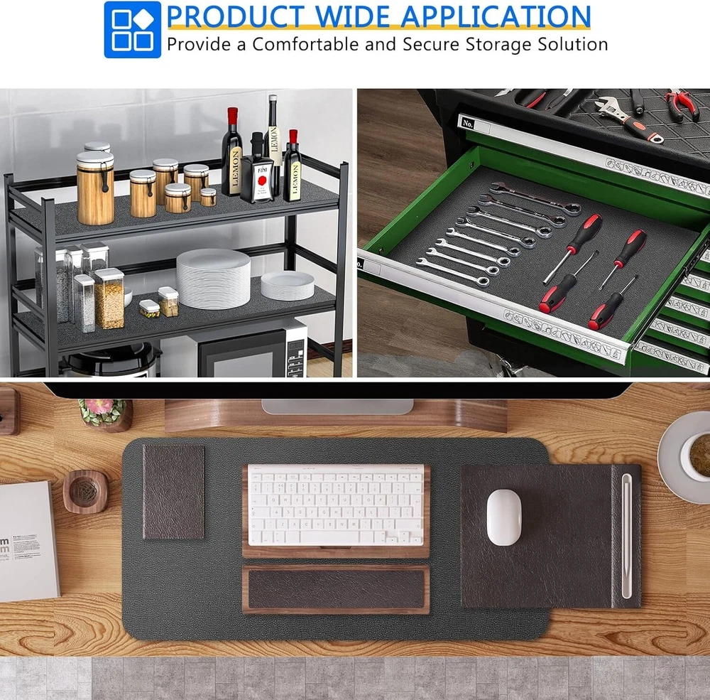 Tool Box Liner Drawer Liners Non Slip Padded Shelf Foam Rubber Roll Mat Gray Color: Gray Material: Foam Product Dimensions: 59"L x 11.8"W Recommended Uses For Product: Dresser, Cabinet, Cupboard, Toolbox, Desk Special Feature Non-Adhesive Theme: Shelf Liners Pattern stone Product Care Instructions: Wipe with Damp Cloth Number of Items 1 Unique Material Design: Made of foam material with inner nylon mesh, with the leather like surface design, our shelf & drawer liner is anti-skid and cushioned. Our cabinet liner is a great choice for your pantry, kitchen, bedroom dresser Non Adhesive and Non Slip: This non-adhesive shelf liners can be easily removed from your cabinets, and not damage the surface of shelf, drawer, cabinet. more, the items you placed on the mat will not slide around anymore Multifunctional Shelf Liner: The Shelf drawer liners can be used as kitchen shelf liners to ensure the cleanliness of the home. It can also be used as a desk mat, shoe mat, wire shelf liner or counter top cover, garage toolbox liner etc Easy to Clean: When the kitchen cabinet liners for shelves are with oil or other dirt on it, you can be wiped lightly with a damp cloth or rinsed with water to remove the stains on the surface Multi-size: Our drawer liners has multi width and length, you can easily cut out the size you need with scissors or DIY into various patterns you want, it’s the best choice for DIY home life Return Policy: We offer a 30 day return policy from the receiving date. Please contact us for a Free Return Label. Please use our return label so it will go back to our supplier and we can do a refund or replacement afterwards. Feedback: Your satisfaction is very important to us! If you have any problem with your order, please contact us and we will do our very best to make you satisfied. As long as you are happy with your purchase, please leave a positive feedback for us. We will always leave you a positive feedback in return. If you have any problem with your purchase, please do not leave a negative feedback. Please Contact us ... and your issue will be solved quickly and positively We are a small family-owned business trying to make a living, not a huge company that does not care ... We will ALWAYS do our best for you!