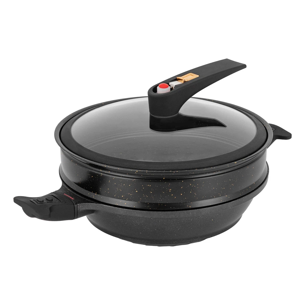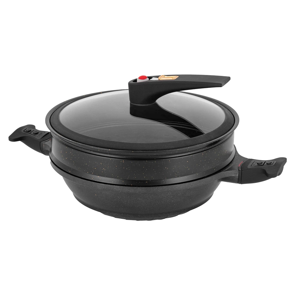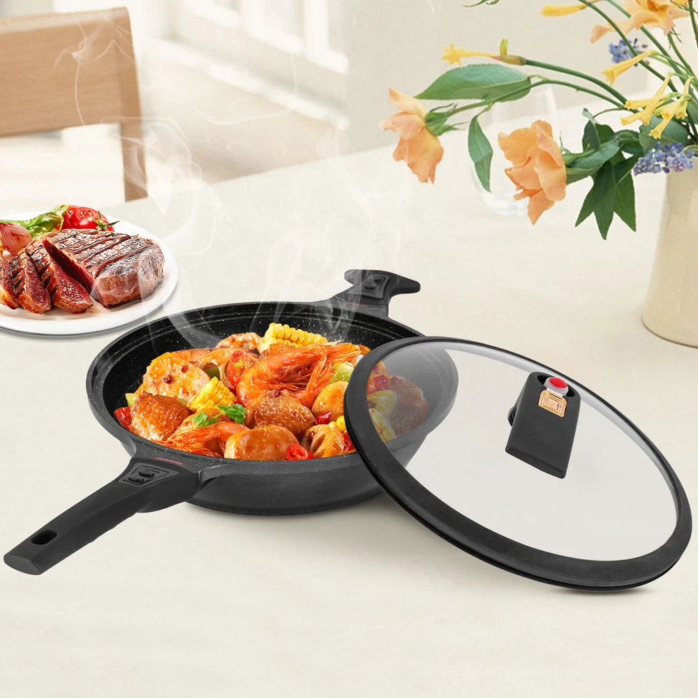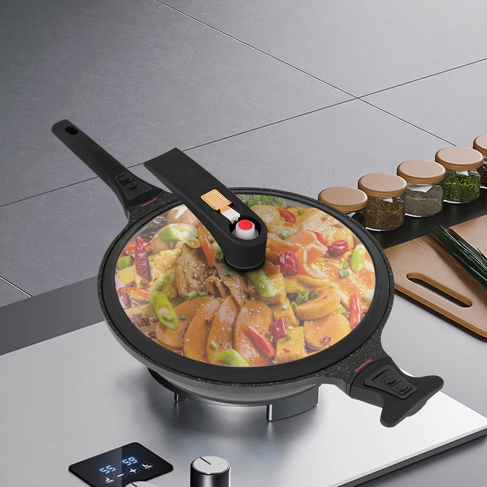 Specifications Material: Aluminum Alloy, Bakelite, Tempered Glass Process: Polishing, Sanding, Blasting, Coating Shape: Round Color: Black Style: Modern Assembly Required: Yes Machine Washable: No Applicable Number of People: 3-8 Maximum Temperature Resistance: 380°C/716°F Opening Diameter: 32cm/12.6in Pot Depth: 9.5cm/3.74in Overall Product Length: 62cm/24.41in Handle Length: 20.5cm/8.07in Bottom Diameter: 16.5cm/6.5in Gross Weight: 4.5kg/9.92lbs Net Weight: 4kg/8.82lbs Package Size: 44.5*35.5*23cm/17.52*13.98*9.06in Package Included 1*Frying Pan 1*Steamer Basket 1*Lid 1 Pair* Anti-scald Gloves Other Accessories for Installation WELCOME~ Description If you love cooking, you can try this micro-pressure frying pan. It is made of high-quality materials and adapts non-coating technology, which is not only smooth and easy to clean but also safe to use. The wok with a steamer basket allows you to cook and steam food at the same time for your convenience. The versatile modern design will add a touch of character to your home, so come and pick one up. Key Features Sturdy and Durable : High-quality aluminum alloy, bakelite , tempered glass, and polishing, sanding, blasting, and coating processes make the product strong, corrosion-proof , rust-proof , and long-lasting. Enjoy Delicious Food : The micro-pressure cooking technology locks in the moisture inside the pan during the braising process to keep the meat fresh, and you only need to use medium-low heat to finish cooking throughout the whole cooking process. The composite pan bottom heats up evenly, and the non-stick coating makes food less likely to stick to the pan, so you can heat your ingredients quickly and enjoy a delicious meal. Multifunctional Cooking : The pot can be used for frying, stir-frying, stewing, deep-frying, and boiling, equipped with a steamer basket that can steam buns, steamed buns, dumplings, etc. to meet your various cooking needs. You can also steam buns while boiling to save your time. Large Capacity : The 12.6" opening diameter and 3.74" depth provide you with plenty of cooking capacity for about 3-8 people, fully meeting your daily cooking needs for your family. User-friendly : The clear lid makes it easy for you to observe the cooking status of your food and reduces the frequency of opening the lid. The handle of the lid is also convenient for you to hold and use. Effortless Clean : A smooth surface, simple construction, non-stick technology, and detachable design make this product easy to clean. You can simply rinse it with water and detergent and dry it. Easy to Use: The long ergonomic handle allows you to toss the pan and stir fry as you please without burning your hands. You can also replace it with equipped double-ear handles for convenient boiling or stewing. Versatile Appearance : It adopts a classic black design that can match most decorating styles and color themes, suitable for most use scenarios. Ideal Gift : Thanks to its exquisite design and practical function, you can choose this product as a housewarming gift for your family or friends who like cooking. Details Pressure Relief Valve : It allows you to easily release pressure and open the lid. Anti-scald Gloves : Two anti-scald gloves can protect your hands from high-temperature burns and provide you with more convenience. Sealing Ring : It makes the connection of the lid and lid handle more tight, reducing air leakage and ensuring safe use. Application It is compatible with gas hob, induction hob, and ceramic hob and is safe to use at temperatures up to 716°F. It is suitable for stir-frying, steaming, stewing, and deep-frying at homes, restaurants, hotels, fast-food shops, and so on. Specifications Material: Aluminum Alloy, Bakelite , Tempered Glass Process: Polishing, Sanding, Blasting, Coating Shape: Round Color: Black Style: Modern Assembly Required: Yes Machine Washable: No Applicable Number of People: 3-8 Maximum Temperature Resistance : 380°C/716°F Opening Diameter: 32cm/12.6in Pot Depth: 9.5cm/3.74in Overall Product Length: 62cm/24.41in Handle Length: 20.5cm/8.07in Bottom Diameter: 16.5cm/6.5in Gross Weight: 4.5kg/9.92lbs Net Weight: 4kg/8.82lbs Package Size: 44.5*35.5*23cm/17.52*13.98*9.06in Package Included 1*Frying Pan 1*Steamer Basket 1*Lid 1 Pair* Anti-scald Gloves Other Accessories for Installation Notes Please note that this product does not contain any food. Air must be released from the valve before opening the lid after cooking to avoid overpressure. This product is not recommended to be washed in a dishwasher. When using it for the first time, please wash the pan with a neutral detergent first. After washing, you can coat the surface of the pan with oil to extend the life of the pan. It is recommended to use a silicone spatula or a wooden spatula and to use spatulas sparingly. Pour in the oil before turning on the heat, please do not dry cook in an empty pan. We recommend cooking over medium-low heat. Please cook shellfish ingredients with care. At the end of each cooking session, rinse the pan after it cools down naturally and then wipe it dry. Please allow the slight color difference caused by the shooting light and the 1-3 cm error due to manual measurement, and make sure you do not mind before ordering. Payment Delivery details Terms of sales About us Contact us Payment We accept ebay payment 。 Fees such as import duties, taxes are not included in the item price or shipping costs. These charges are the buyer's responsibility. Delivery details Shipping: 2-9 working days to: USA Terms of sales We maintain high standards of excellence and strive for hundred percent customer satisfaction. Feedback is very important to us. We hope that you contact us immediately before you give neutral or negative feedback, so that we can address your concerns. It is impossible to address issues if we do not know about them! About us Your satis faction is our ultimate goal. We work hard to earn your trust and future business. Our certified tec