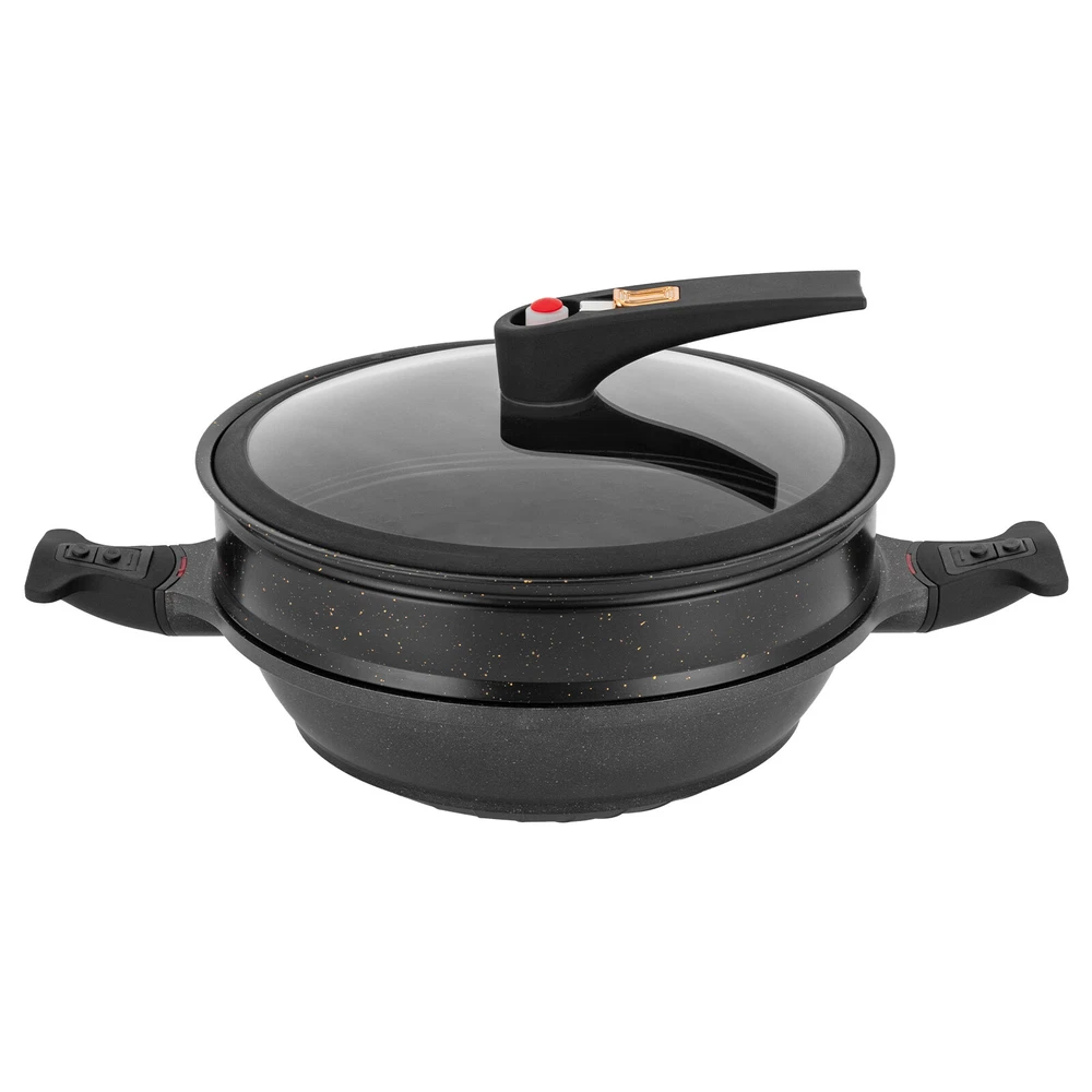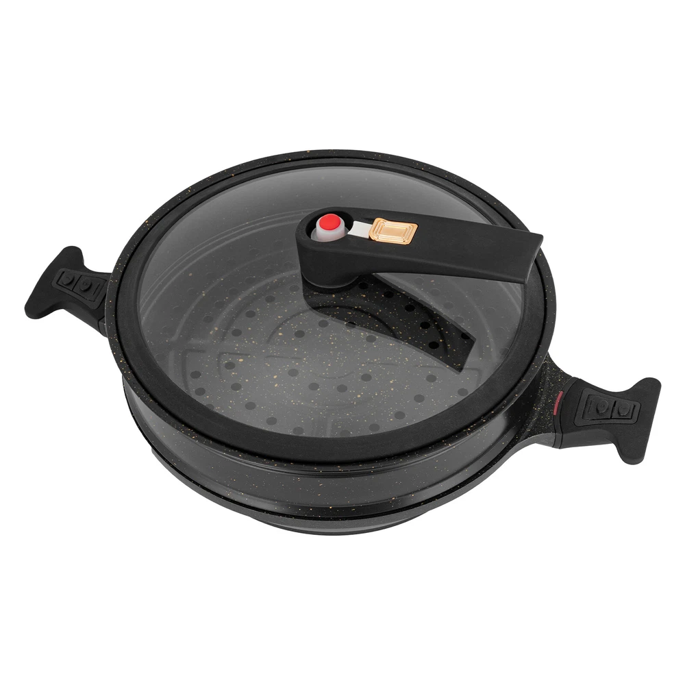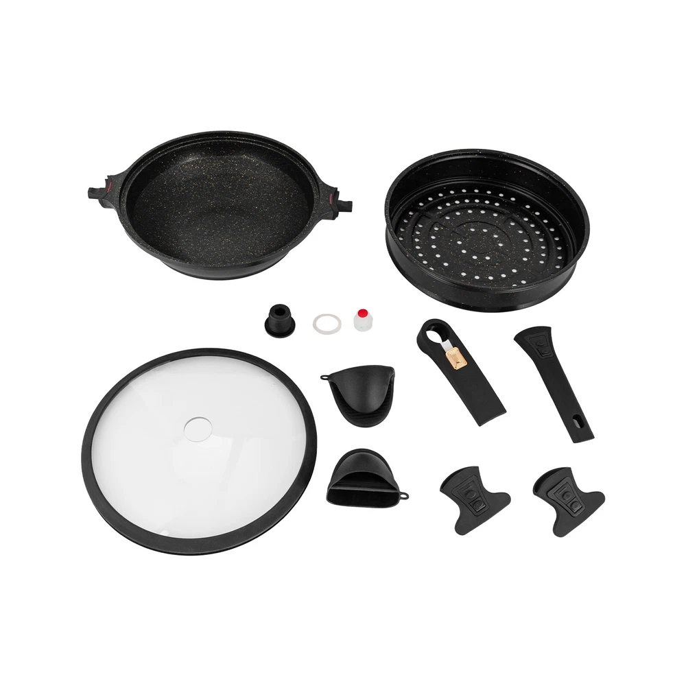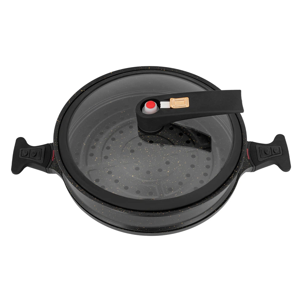 Specifications Material: Aluminum Alloy, Bakelite, Tempered Glass Process: Polishing, Sanding, Blasting, Coating Shape: Round Color: Black Style: Modern Assembly Required: Yes Machine Washable: No Applicable Number of People: 3-8 Maximum Temperature Resistance: 380°C/716°F Opening Diameter: 32cm/12.6in Pot Depth: 9.5cm/3.74in Overall Product Length: 62cm/24.41in Handle Length: 20.5cm/8.07in Bottom Diameter: 16.5cm/6.5in Gross Weight: 4.5kg/9.92lbs Net Weight: 4kg/8.82lbs Package Size: 44.5*35.5*23cm/17.52*13.98*9.06in Package Included 1*Frying Pan 1*Steamer Basket 1*Lid 1 Pair* Anti-scald Gloves Other Accessories for Installation WELCOME~ Description If you love cooking, you can try this micro-pressure frying pan. It is made of high-quality materials and adapts non-coating technology, which is not only smooth and easy to clean but also safe to use. The wok with a steamer basket allows you to cook and steam food at the same time for your convenience. The versatile modern design will add a touch of character to your home, so come and pick one up. Key Features Sturdy and Durable : High-quality aluminum alloy, bakelite , tempered glass, and polishing, sanding, blasting, and coating processes make the product strong, corrosion-proof , rust-proof , and long-lasting. Enjoy Delicious Food : The micro-pressure cooking technology locks in the moisture inside the pan during the braising process to keep the meat fresh, and you only need to use medium-low heat to finish cooking throughout the whole cooking process. The composite pan bottom heats up evenly, and the non-stick coating makes food less likely to stick to the pan, so you can heat your ingredients quickly and enjoy a delicious meal. Multifunctional Cooking : The pot can be used for frying, stir-frying, stewing, deep-frying, and boiling, equipped with a steamer basket that can steam buns, steamed buns, dumplings, etc. to meet your various cooking needs. You can also steam buns while boiling to save your time. Large Capacity : The 12.6" opening diameter and 3.74" depth provide you with plenty of cooking capacity for about 3-8 people, fully meeting your daily cooking needs for your family. User-friendly : The clear lid makes it easy for you to observe the cooking status of your food and reduces the frequency of opening the lid. The handle of the lid is also convenient for you to hold and use. Effortless Clean : A smooth surface, simple construction, non-stick technology, and detachable design make this product easy to clean. You can simply rinse it with water and detergent and dry it. Easy to Use: The long ergonomic handle allows you to toss the pan and stir fry as you please without burning your hands. You can also replace it with equipped double-ear handles for convenient boiling or stewing. Versatile Appearance : It adopts a classic black design that can match most decorating styles and color themes, suitable for most use scenarios. Ideal Gift : Thanks to its exquisite design and practical function, you can choose this product as a housewarming gift for your family or friends who like cooking. Details Pressure Relief Valve : It allows you to easily release pressure and open the lid. Anti-scald Gloves : Two anti-scald gloves can protect your hands from high-temperature burns and provide you with more convenience. Sealing Ring : It makes the connection of the lid and lid handle more tight, reducing air leakage and ensuring safe use. Application It is compatible with gas hob, induction hob, and ceramic hob and is safe to use at temperatures up to 716°F. It is suitable for stir-frying, steaming, stewing, and deep-frying at homes, restaurants, hotels, fast-food shops, and so on. Specifications Material: Aluminum Alloy, Bakelite , Tempered Glass Process: Polishing, Sanding, Blasting, Coating Shape: Round Color: Black Style: Modern Assembly Required: Yes Machine Washable: No Applicable Number of People: 3-8 Maximum Temperature Resistance : 380°C/716°F Opening Diameter: 32cm/12.6in Pot Depth: 9.5cm/3.74in Overall Product Length: 62cm/24.41in Handle Length: 20.5cm/8.07in Bottom Diameter: 16.5cm/6.5in Gross Weight: 4.5kg/9.92lbs Net Weight: 4kg/8.82lbs Package Size: 44.5*35.5*23cm/17.52*13.98*9.06in Package Included 1*Frying Pan 1*Steamer Basket 1*Lid 1 Pair* Anti-scald Gloves Other Accessories for Installation Notes Please note that this product does not contain any food. Air must be released from the valve before opening the lid after cooking to avoid overpressure. This product is not recommended to be washed in a dishwasher. When using it for the first time, please wash the pan with a neutral detergent first. After washing, you can coat the surface of the pan with oil to extend the life of the pan. It is recommended to use a silicone spatula or a wooden spatula and to use spatulas sparingly. Pour in the oil before turning on the heat, please do not dry cook in an empty pan. We recommend cooking over medium-low heat. Please cook shellfish ingredients with care. At the end of each cooking session, rinse the pan after it cools down naturally and then wipe it dry. Please allow the slight color difference caused by the shooting light and the 1-3 cm error due to manual measurement, and make sure you do not mind before ordering. Payment Delivery details Terms of sales About us Contact us Payment We accept ebay payment 。 Fees such as import duties, taxes are not included in the item price or shipping costs. These charges are the buyer's responsibility. Delivery details Shipping: 2-9 working days to: USA Terms of sales We maintain high standards of excellence and strive for hundred percent customer satisfaction. Feedback is very important to us. We hope that you contact us immediately before you give neutral or negative feedback, so that we can address your concerns. It is impossible to address issues if we do not know about them! About us Your satis faction is our ultimate goal. We work hard to earn your trust and future business. Our certified tec