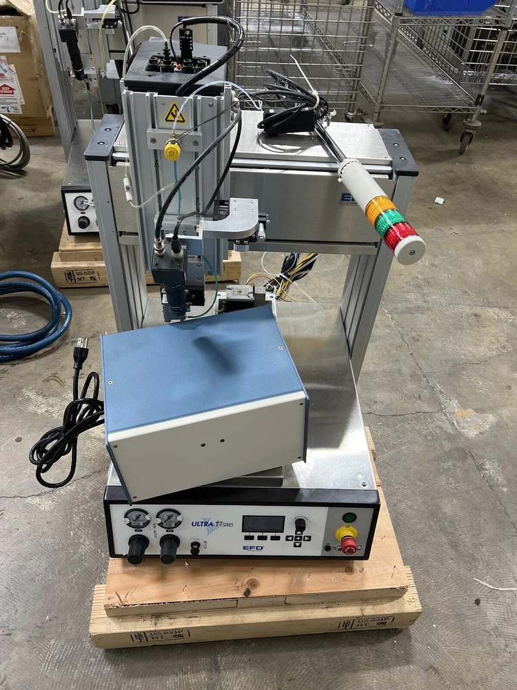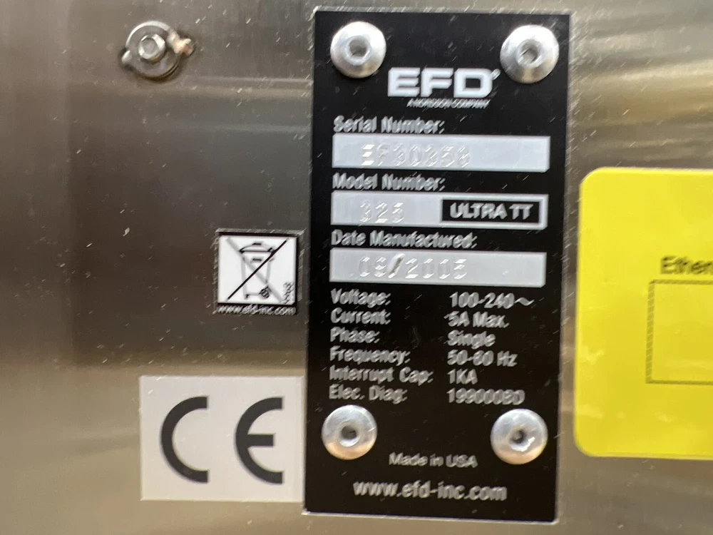 Description Unit powers on, but the screen is dim. The jog works somewhat but won't return to home and errors out. For this reason, we are selling the unit AS-IS for parts/repair as a non-working or incomplete unit. We have not tested / inspected any further, item may have unknown issues we are not aware of. See all item photos for the condition of the unit. Unless pictured, no power adapter / power cable included The unit is on hand and ready to ship. Please feel free to message us with any questions you may have. Specifics Manufacturer EFD Model Number 325 Ultra TT SKU 19-59709 Includes Includes 2x Clippard EV-3M-24 Valves Thermode Controller Power Supply and Custom Fixture Unbranded Dispensing Head Patlite LCE-TFB Light Beacon Pulnix Camera W/ CMount TV Lens Extension Tube Set 40m Terms and Conditions Includes This listing includes only what is pictured or described. Please contact us for additional details. Many of our items take a standard PC style power cable (NEMA 5-15P to IEC-320-C13) which unless pictured is not included. We can include one if requested at the time of checkout free of charge. If unsure, please do not hesitate message us and we will be happy to confirm for you what is included with your purchase. If a custom power cord or AC adapter is required for the item, it is only included if pictured or described above. Shipping Details Shipping originates from zip code 95742. Unless otherwise specified, orders will be shipped by Fedex, USPS, GSO, or UPS at the seller’s discretion in order to ensure delivery by the estimated delivery date. Orders received by 8am PST are shipped same day, all other orders are shipped within 1 business day. Most listings offer Standard, Expedited, and Overnight shipping options. If these shipping options do not meet your needs, please contact us to make arrangements. We gladly ship international, please contact us for a quote if no shipping option is provided. All items are carefully packed with brand new packaging materials to ensure your item arrives on time and without damage. International Buyers Import duties, taxes, and charges are not included in the item price or shipping cost. These charges are the buyer's responsibility. Please check with your country's customs office to determine with these additional costs will be prior to bidding or buying. Customs fees are normally charged by the shipping company or collected when you pick the item up. These fees are not additional shipping charges. We will not under-value merchandise or mark the item as a gift on customs forms. Doing so is against US and international law. Privacy Rest assured your information will not be given, sold, rented or loaned to any third party.