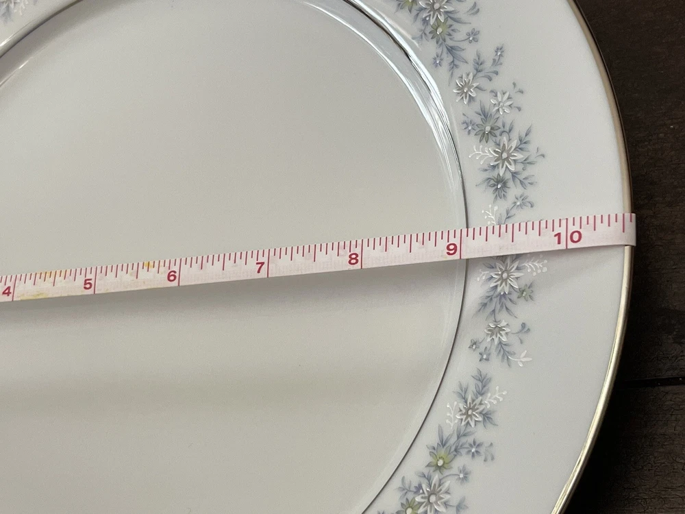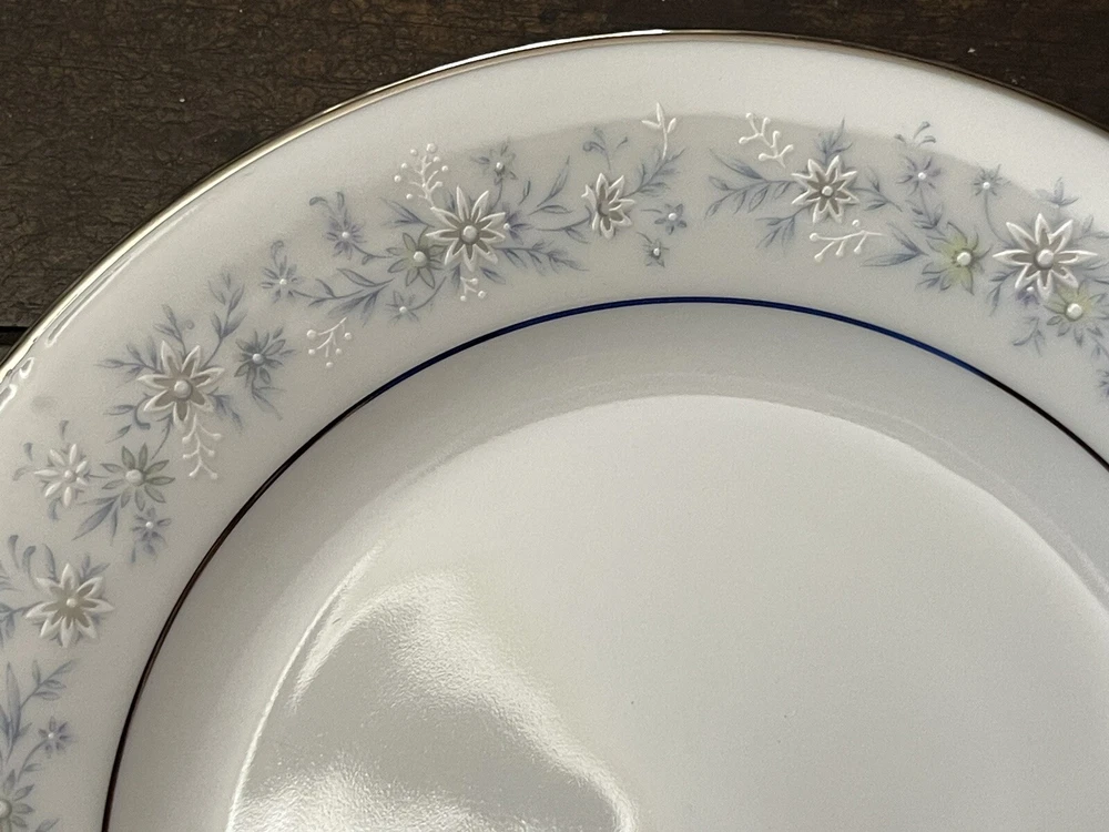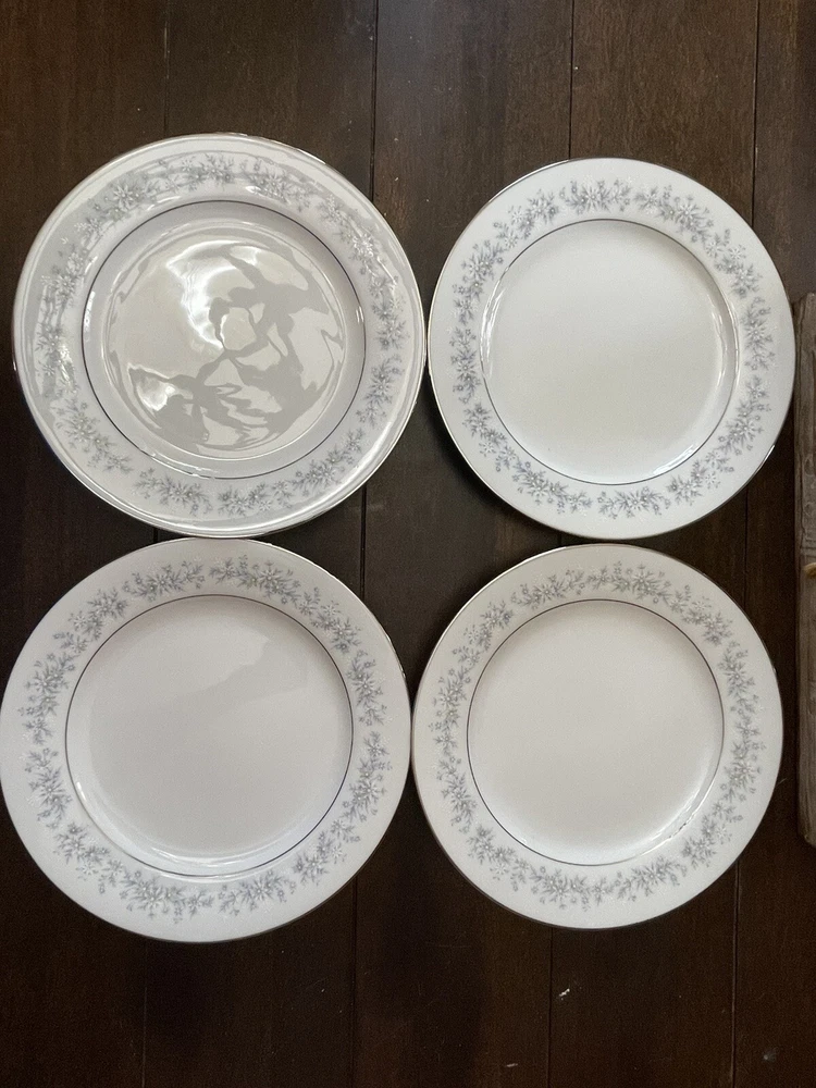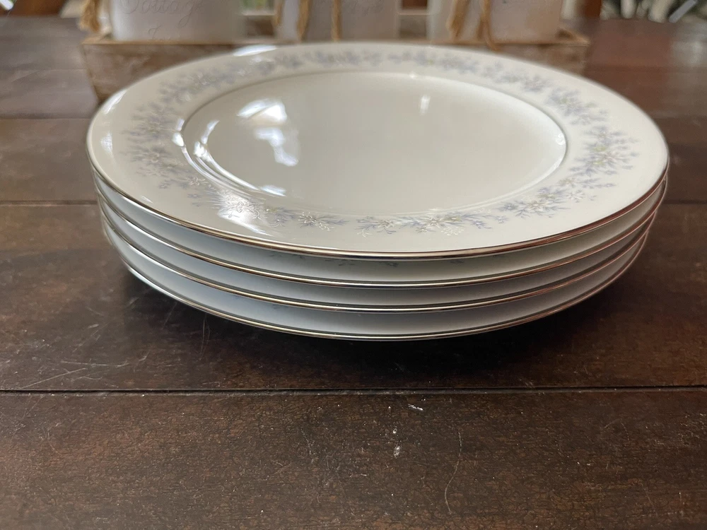 Noritake Marywood 10 1/2" Dinner Plates Blue Flowers Silver Trim 2181 Set Of 4