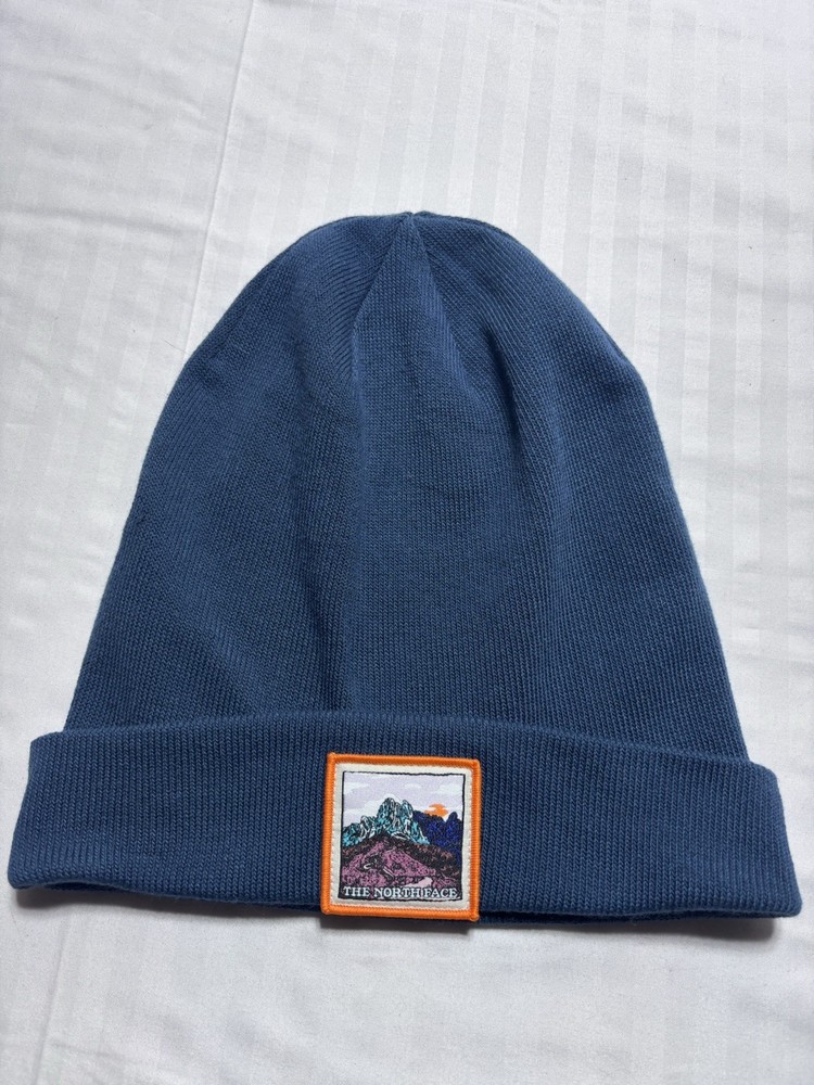 THE NORTH FACE Embroidered Earthscape Beanie Blue One Size Nice. Pre owned shipped with usps ground advantage.