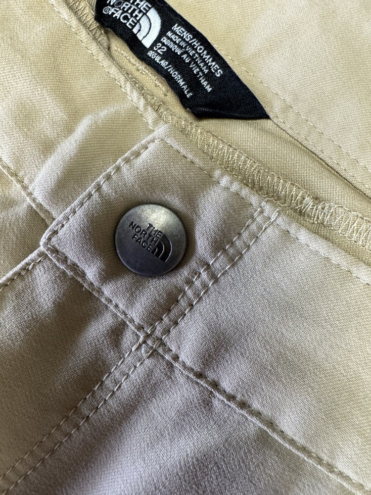 The North Face Retrac Tech Pant for men in size 32 x 30 is a durable and versatile piece suitable for various occasions such as travel, casual wear, work, and business meetings. Made from a blend of nylon and spandex, these khaki pants feature a mid-rise fit with a flat front and straight leg style. The thigh pockets add functionality and convenience, while the quick-dry and stretchy fabric ensures comfort throughout the day. Perfect for all seasons, these pants in a solid brown color are a stylish and practical choice for outdoor activities or everyday wear.