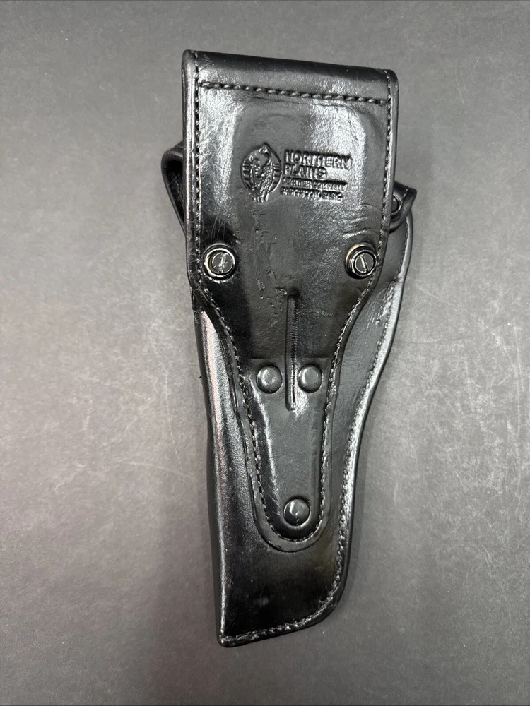 The NORTHERN PLAINS Leather Revolver Holster is designed specifically for full frame Smith & Wesson 357 Magnum guns. Made of durable leather, this duty holster is suitable for carrying either a revolver or a pistol at the 1 o'clock position on the belt (OWB) or hip. It is ideal for hunters and features a classic design that is both functional and stylish.