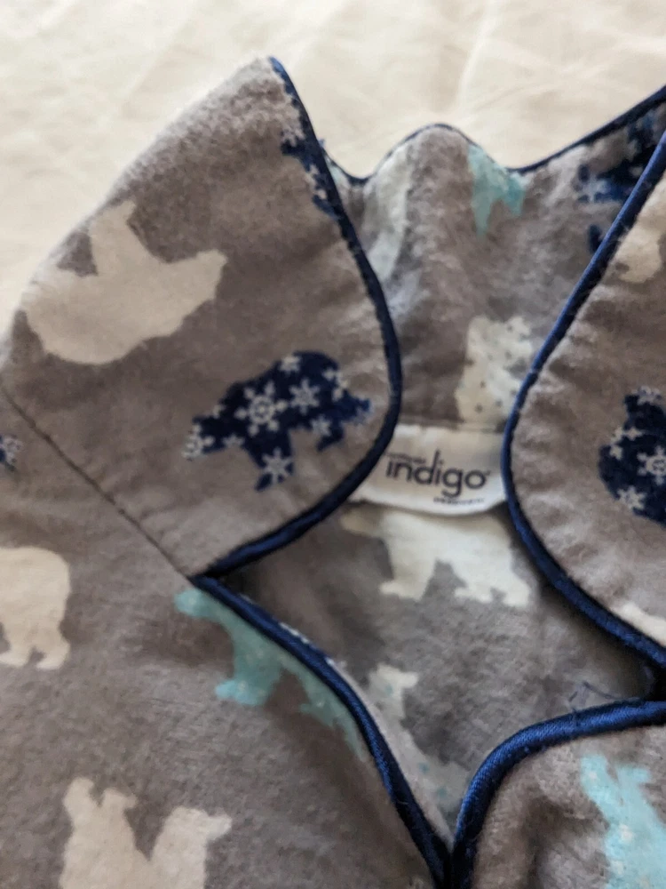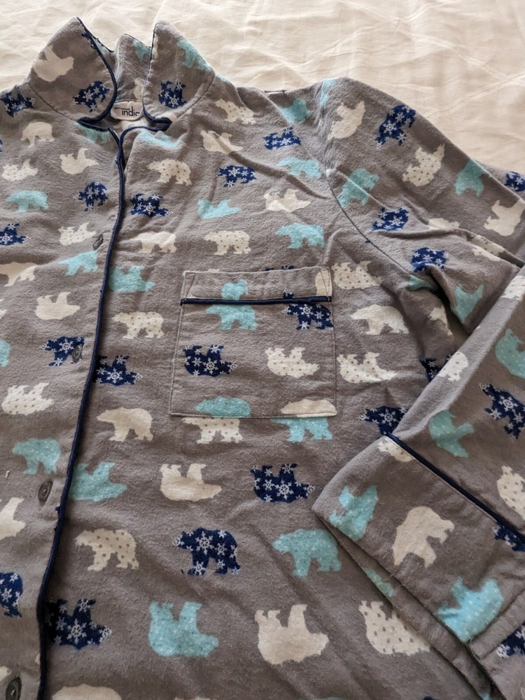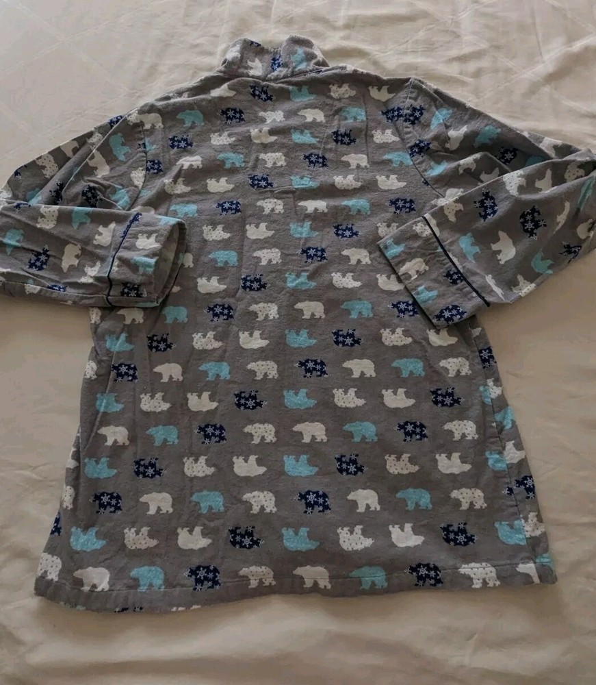 Get cozy in this Great Northwest Indigo Pajama Top. The grey top features a cute animal print with polar bears and is perfect for the winter and fall seasons. Made from 100% cotton flannel, this button-up top has a collared neckline and long sleeves for added warmth. Care for this top is easy as it is machine washable. Available in size L, this pajama top is perfect for women who love animals and want to stay cozy during the colder months.