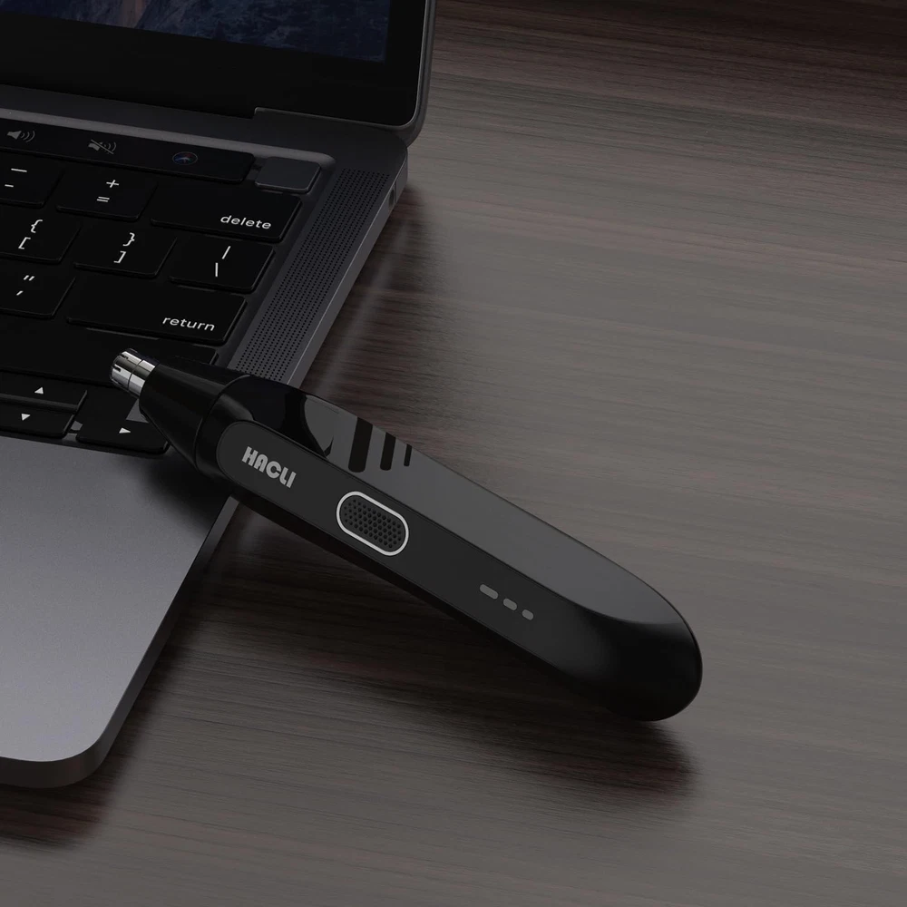 Precision & Comfort: The Professional Cordless Nose&Ear Hair Trimmer features an upgraded copper core motor with an 8000 RPM speed, driving a 360° rotating dual-blade system. The anti-allergenic stainless steel blades ensure precise and comfortable hair trimming without pulling or damaging nasal hairs. Long-Lasting Battery: Equipped with a 600 mAh lithium-ion battery, this trimmer can be used for up to 180 minutes after a 90-minute charge. One full charge can last 2-3 months, eliminating the need for frequent recharging and enhancing convenience. Waterproof & Quiet Operation: The IPX7 waterproof design allows for complete submersion, making cleaning easy and safe. With a noise level of only 45dB, this trimmer ensures a quiet grooming experience without disturbing your surroundings. Durable & Portable: Made from sturdy ABS material, the one-piece design is both drop-resistant and lightweight at only 72g. Perfect for business trips or travel, it fits easily into your bag. The LED indicator shows the power level, and the travel lock feature prevents accidental activation. Easy Charging & Versatile Use: Comes with a USB Type-C charging cable, allowing easy charging via mobile power banks, laptops, or phone chargers. Suitable for both men and women, this user-friendly design makes it a practical and thoughtful gift choice for friends and family. Thoughtful Gift: The Nose&Ear Hair Trimmer, with its sleek design and comprehensive features, is an ideal gift. It combines practicality and convenience, making it a perfect choice for anyone looking to enhance their grooming routine.
