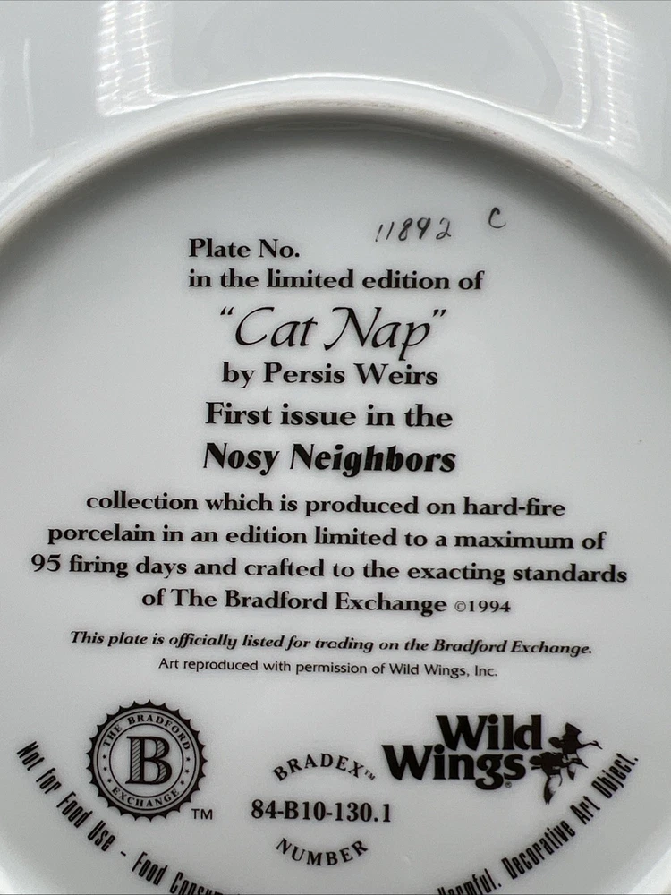 Cat Nap First Issue Bradford Exchange Nosy Neighbors Persis Weirs Collect Plate I will pack with care and get it to you ASAP Thanks for looking !