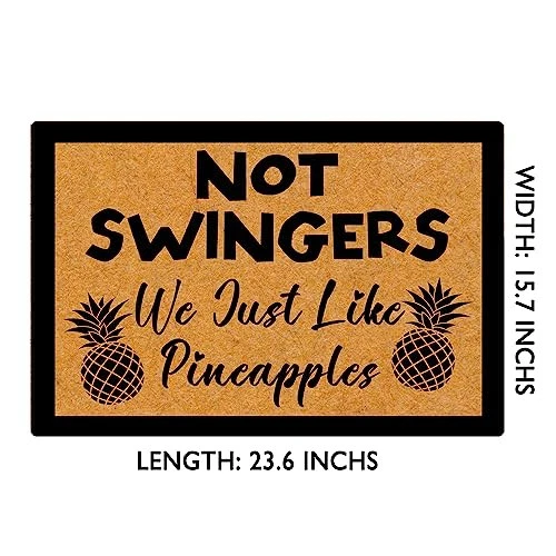 Menu 1. We require immediate payment. 2. We currently accept payment via eBay managed payments only. 3. Once payment is cleared, we will dispatch your shipment within 1-3 business days. Please refer to the "Shipping" tab for more information regarding shipping speed to your destination. Not Swingers We Just Like Pineapples Funny Doormat for Entrance Way with Non Slip Backing Indoor/Outdoor Welcome Mats Home and Office Decorative Rug 23.6 in(W) X 15.7 in(L) Product description Material&Size:The front is made of high-quality felt , and the back is made of high-quality Non-slip Rubber. About 23.6"(L) x 15.7"(W)0.11"(3mm) , thin thickness to fit most standard size doorways and entryways. Applicable scenarios:It can be used to Indoor and outdoor universal.Such as bathroom/kitchen/balcony/entrance/laundry/bedroom/office, etc. Soft Non-Slip & Safety:The front door mat made of durable non-slip rubber backing that secures, well to the floor to prevent accidental falls. Non slip doormat always protects the safety of you and family. Design&Easy to clean:Rich printed surfaces, personalized celebrity quotes or interesting logos and funny design will be great gift choice for occasion.It is weather-resistant and quick-drying, just shake the mat or wash, dirt will disappear.(Machine washable) Customer Service : If t is any problem. We will respond you under 24 hours .May you have a pleasant day! PLEASE MESSAGE US IF YOU HAVE ANY OTHER QUESTIONS, AND MANY THANKS FOR READING ALL OF THIS. Copyright ©#. All Rights Reserved.