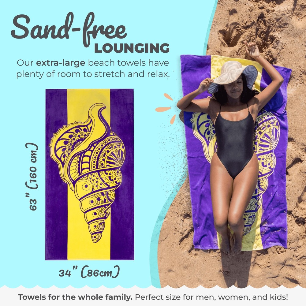 Seashell Beach Towel (34 X 63) - Purple & Yellow Travel Towel Made From 100% Cotton - Unique Adult With Tropical Design - Compact GO-TO BEACH ACCESSORY - Make summer plans even better with oversized cotton beach towels ☀️ Our soft and absorbent towels are perfect for both men and women. Each towel is printed with fun tropical designs. Pick one for each family member! PERFECT SIZE FOR THE BEACH - Measuring 34 x 63 in / 86 x 160 cm, our extra-large beach towels have plenty of room to stretch out and relax 🌴 Whether you're working on a tan or catching up on reading, you won't have to pause to shake sand away. These big towels even double as a blanket 100% COTTON VELOUR - Enjoy the softness and absorbency of our premium cotton beach towels 💧 Unlike microfiber towels, ours offer a plush velour surface and a looped terry bottom that absorbs water quickly 🏄 At 400GSM, they're also lightweight and portable COLLECT THEM ALL - Easy to spot from a distance, our family-friendly beach towels feature bright, tropical designs inspired by our love of the ocean 🌊 Each unique towel makes a great gift 🐚 This style features a conch shell on vibrant purple and yellow stripes SUPER VERSATILE & DECORATIVE - Designed with your busy life in mind, our versatile and packable beach towels can be used many ways 🌈 Bring them to the pool and lay them over sun loungers. Travel to the beach for a relaxing day in the sand. Use them as cozy bath towels or throws Fun summer plans get even better with our bright and colorful cotton beach towels. Lightweight and packable at 400gsm, our extra-large beach towels are easy to roll up and bring along. Adults and kids love them! Ideal for the whole family, our beach towels are extra-large at 34 x 63 in/86 x 160 cm. Use them as a beach blanket or lay them over a hot sun lounger by the pool. Our towels are 100% cotton and reversible. A plush velour top offers superior comfort while lying in the sun. A quick-dry loop terry bottom is ultra-absorbent and ideal for wrapping up in after a swim. Vibrant colors and unique designs make our towels stand out, even on a crowded beach. Fun tropical motifs make them collectible and giftable. Give one to a beach-loving friend or avid traveler. Don't plan your next beach day without packing the perfect towel. Our bright and colorful cotton beach towels are designed to make trips to the seaside—and the poolside—better than ever. Choose your favorite colors and sea-inspired motifs for yourself and every member of the family. Our unique designs are inspired by the ocean and everything that lives in (and near) it. Our bright and colorful designs are fun, but they're also functional! You'll be able to quickly identify your spot on the beach when you look for our unique tropical color palettes. All of our towels make perfect travel companions. Lightweight and packable at 400gsm, they can be tucked into backpacks, suitcases and beach bags with ease. Extra-large dimensions let you wrap up warmly after a swim. Measuring 34 x 63 in/86 x 160 cm, they keep the sand off your body, even doubling as a blanket for napping in the shade. Safety and wellness are our priority. Bringing family to the beach? Our colorful designs will make them easy to spot. Made with busy summer schedules in mind, these towels are easy to care for. Just toss them in the wash! Durable construction ensures they'll be around for many seasons to come. Shipping We offer FREE shipping on all orders! We ship within Three business days of payment, usually sooner. We use a selection of shipping services such as UPS, FedEx, USPS etc. We only ship to the lower 48 states, no APO/FPO addresses or PO Boxes allowed. Local pickups and combined shipping options are not provided at this time. Return You can return a product for up to 30 days from the date you purchased it. Any product you return must be in the same condition you received it and in the original packaging. Please keep the receipt. Payment We accept payment by any of the following methods: PayPal Please pay as soon as possible after winning an auction, as that will allow us to post your item to you sooner! Feedback Customer satisfaction is very important to us. If you have any problem with your order, please contact us and we will do our best to make you satisfied. Contact Us If you have any queries, please contact us via ebay. We usually respond within 24 hours on weekdays. Please visit our eBay store to check out other items for sale! Thank you for shopping at our store.