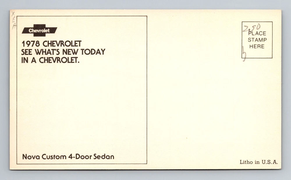 Nova Custom 4 Door Sedan, Cars, Transportation, Antique Vintage Postcard