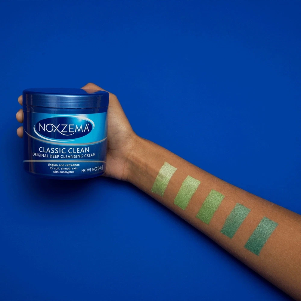 Product Description Noxzema Classic Moisturizing Facial Cleanser Cream, With Real Eucalyptus Extract, For All Skin, 12 Ounce (Pack Of 2) Noxzema Classic Clean Moisturizing Cleansing Cream, you’ll experience clean, smooth skin, and the classic refreshing Noxzema tingle. In addition to being an effective face cleanser, this moisturizing cream adds a dose of moisture to invigorate your skin. This moisturizing cleansing cream cleans deeply, removing oil, dirt, and makeup to leave your skin soft, while the additional moisturizers keep skin from over drying. The perfect addition to your skin care routine, Noxzema Classic Clean Moisturizing Cleansing Cream is dermatologist-tested and made with eucalyptus, soybean, and linseed oils. This Noxzema Classic Clean Moisturizing Cleansing Cream is also a highly effective makeup remover. How to use: On a wet or dry face, apply generously. MOISTURIZING FACE CLEANSER: Noxzema Moisturizing Cleansing Cream cleans deeply, removing oil, dirt, and makeup to leave your skin soft, while the additional moisturizers keep skin from over drying. SOFT & SMOOTH SKIN: With Noxzema Classic Clean Moisturizing Cleanser you’ll experience clean, smooth skin, the classic Noxzema tingle, and an added dose of moisture. MADE WITH REAL EUCALYPTUS EXTRACT: Made with eucalyptus, soybean, and linseed oils, this dermatologist-tested face cleanser provides a deep clean and moisturizes for soft and hydrated skin. THE SIGNATURE NOXZEMA TINGLE: Eucalyptus oil and Menthol adds the signature Noxzema refreshing tingle to your skin care routine. HOW TO USE: Apply this moisturizing cream generously on a wet or dry face. With fingertips or a wet washcloth, gently massage your face using a circular motion. Rinse thoroughly. THE NOXZEMA DIFFERENCE: Experience the Noxzema difference with skin care products that give your skin an invigorating fresh start. Removes dirt and oil Deep cleans with adding moisture Dermatologist Tested Leaves Skin smooth Conditions Skin With Added Moisturizers Ingredients Water (Aqua, Eau) Steric Acid, Linum Usitatissimum (Linseed) Seed Oil, Glycine Soja (Soybean) Oil, Glycerin, Propylene Glycol, Phenoxyethanol, Gelatin, Fragrance (Parfum), Ammonium Hydroxide, Methylparaben, Camphor, Eucalyptus Globulus Leaf Oil, Propylparaben, Calcium Hydroxide, Menthol, Disodium EDTA, Sodium Bicarbonate, Calcium Chloride, Magnesium Sulfate, Potassium Chloride, Benzyl Benzoate, Eugenol, Geraniol, Limonene, Linalool.