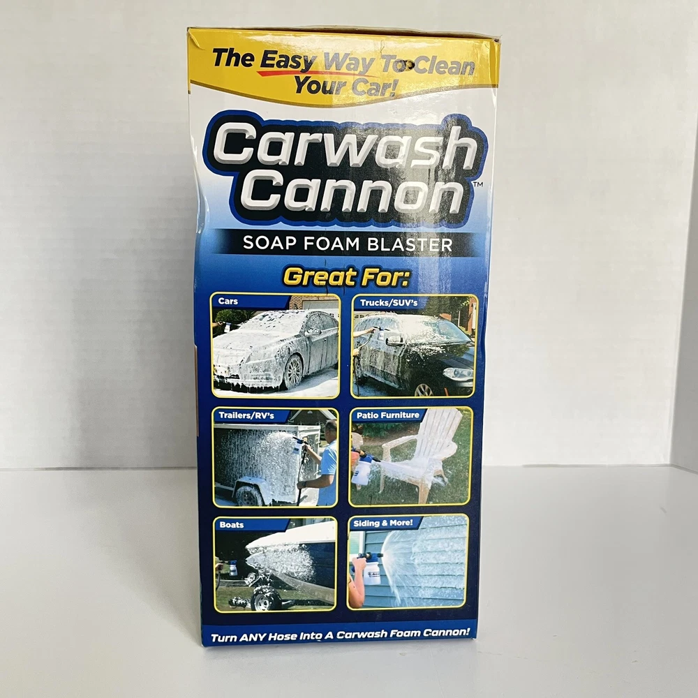 Experience the ease of car washing with the Cannon Soap Foam Dirt Dust Blaster Hose. This lightweight and efficient tool is designed to make your cleaning routine a breeze. Equipped with a quick connect feature, it effortlessly attaches to your hose, and the integrated soap tank ensures you can tackle grime effectively with just the right amount of foam. Crafted for convenience, the Nozzle Spray Car Wash Gun is an essential accessory for any car enthusiast or busy individual looking to maintain their vehicle's appearance. The durable plastic construction guarantees long-lasting use, while the compact design allows for easy storage in your garage or at home. With the product dimensions of 4.21 x 16.02 x 8.44 inches and a weight of 1lb 3oz, you can manage and enjoy this high-quality cleaning solution with minimal effort.