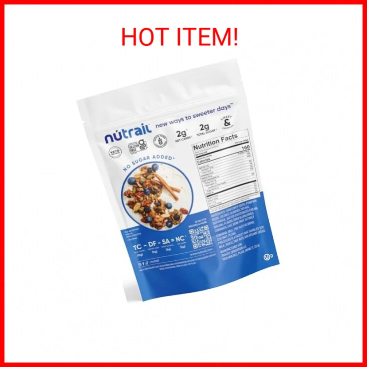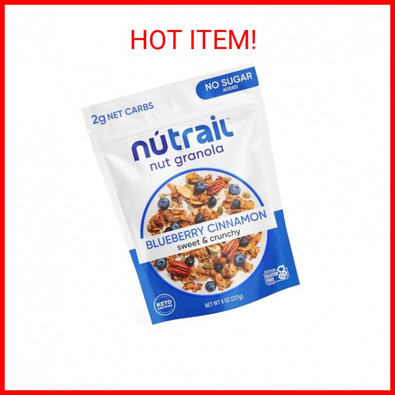 NuTrail Nut Granola Cereal, Blueberry Cinnamon, No Sugar Added, Keto, Low Carb, Gluten Free, Grain Free, Healthy Breakfast 8 oz. 1 Count - DELICIOUS HEALTHY NUT GRANOLA : a no sugar added, Gluten-Free, Grain-Free, Non-GMO, Keto and Kosher Certified, only 1-3g Net Carbs per serving. - NO WRONG WAY TO LOVE US : Enjoy our granola with milk as a Low-Carb, Low-Sugar, Keto Cereal, atop your favorite smoothie or parfait, or straight out of the bag! - SWEET OR SAVORY : Whether you’re making dinner or dessert our Low-Sugar, Low-Carb Nut Granola adapts to your needs. - ON-THE-GO : Our Low-Sugar, Low-Carb, Non-GMO, Keto Granola is perfect for your busy lifestyle. It can be a snack or a filling meal sure to satisfy your cravings. - WE'VE BEEN CALLED : Best In Class Granola, Low Carb granola, Gluten Free Certified granola, Low Carb Snack, Low Sugar Snack Payments We accept the following payment methods PayPal Support Our dedicated customer support team is here to assist you from 9AM to 5PM Monday through Friday, excluding public holidays. Should you reach out to us and not recieve an immediate response, it's likely due to a higher-than-usual volume of inquires. We want to reassure you that your concerns are important to us, and we're working dilligently to get back to you. Expect a response by the next business day at the latest. Your understanding and patience are greatly valued as we strive to provide you with the best support possible! Shipping All orders are processed within 5 business days. Shipping estimates may be shown on this listing by eBay, and these are often not an accurate reflection of our shipping times. If we are experiencing a high volume of orders, shipments may be delayed by a few days. Please allow additional days in transit for delivery. If there will be a significant delay in shipment of your order, we will contact you via message. Shipping rates & delivery estimates Shipping is often free, but if charges for your order apply they will be calculated and displayed at checkout.