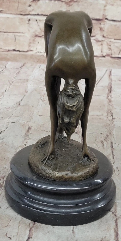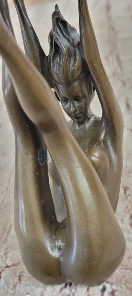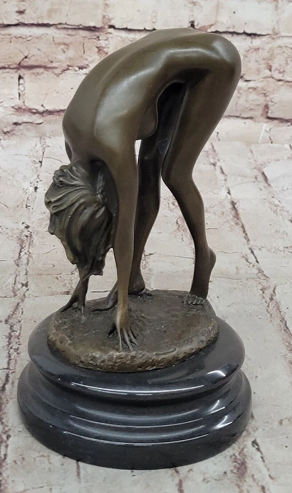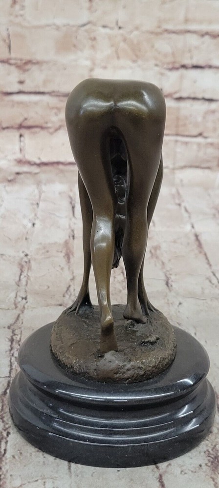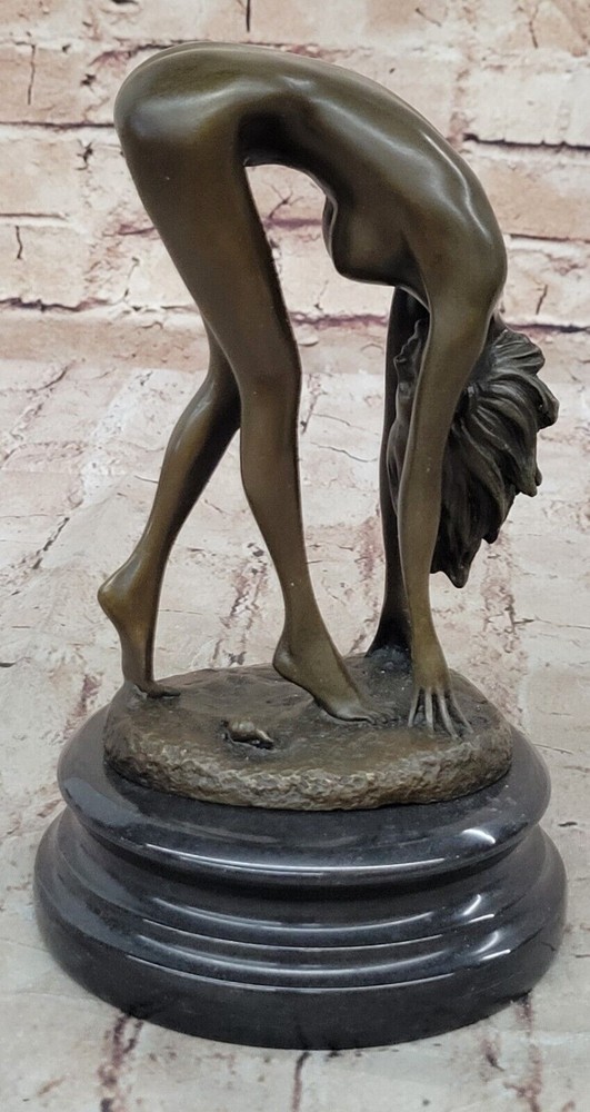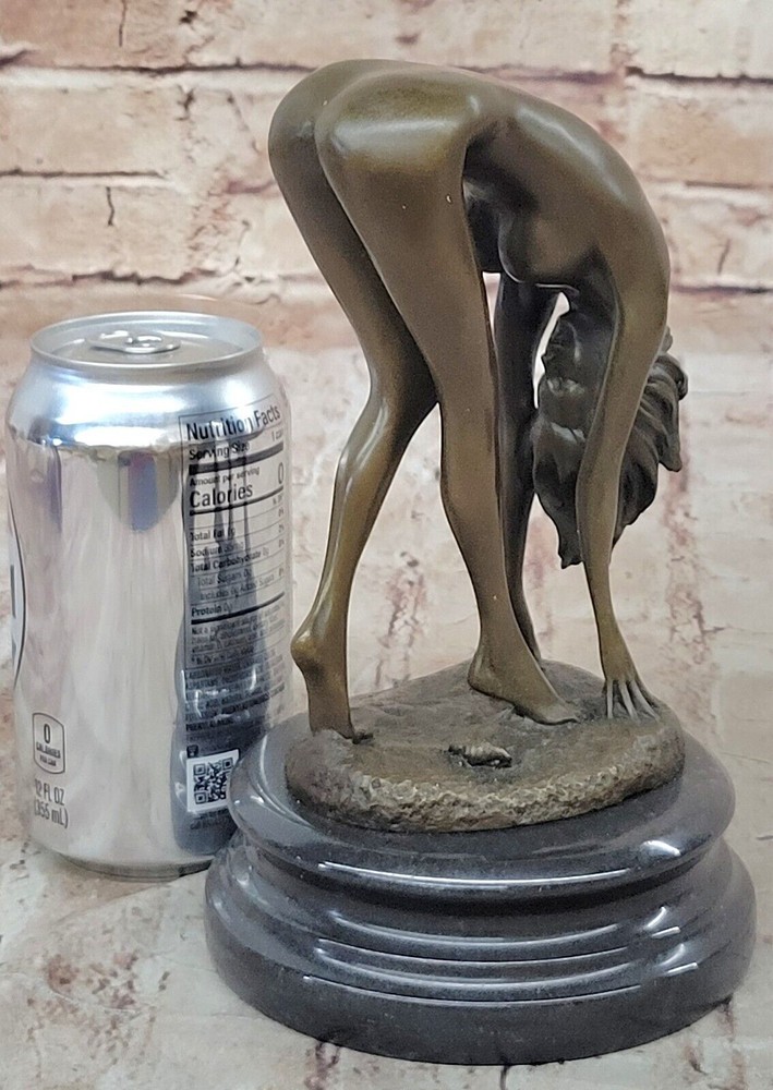 Condition : This sculpture is in perfect condition Bronze Dimensions with Marble Base: Height 8" X Width 5" Marble Dimensions: Diameter 5" Height without base:6.5" Weight:6 LBS Inventory:41EP7623714 This captivating bronze sculpture portrays a reclining nude figure enveloped in an aura of irresistible allure and desire. Crafted using the ancient and intricate lost-wax casting method, the sculpture captures the essence of femininity and sensuality. The artist's attention to detail is evident in the meticulous rendering of the female form, making this piece a celebration of the beauty of the human body. The seductive allure of the sculpture is further enhanced by the choice of a brown patina finish, which adds depth and character to the artwork while ensuring its long-lasting preservation. As the viewer beholds the figure lying on a black marble base, they are drawn into a world where desire and passion are palpable. The artist Cesaro's signature lends authenticity to this exquisite work of art, emphasizing its uniqueness and collectible value. Whether displayed in a private collection or as a statement piece in a public space, this bronze sculpture invites viewers to explore the captivating realm of sensuality and desire. It is a testament to the enduring appeal of the female form and the artist's ability to convey complex emotions through the medium of bronze sculpture. Art Deco Sculpture Sexy Naked Woman Erotic Nude Girl Bronze Statue Figurine Sale Video will open in a new window Using the eBay App? Paste link into a browser window: [isdntekvideo]