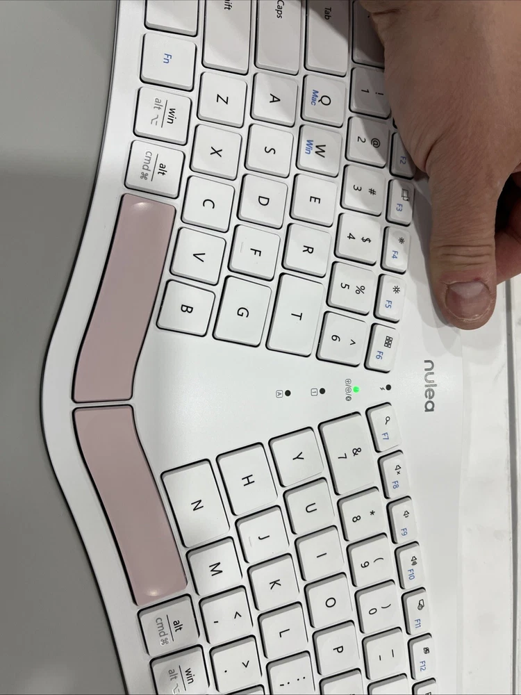 This Nulea Ergonomical Wireless Bluetooth Keyboard, model RT05B HD315, is brand new and sealed in its original packaging. It features a standard QWERTY keyboard layout with English keyboard language support. The keyboard is wireless and has a built-in battery, making it easy to use and convenient. Its sleek black color adds a touch of elegance to your workspace. In addition, this keyboard has a variety of features that make it stand out from other keyboards on the market. It is designed to be ergonomic, reducing strain and discomfort during long periods of use. The Bluetooth connectivity allows for easy pairing with your devices, and the wireless nature of the keyboard means you can work from anywhere without the need for cords or cables. Overall, this Nulea keyboard is a great choice for anyone looking for a high-quality, reliable, and convenient keyboard for their computer or tablet. WORKS GREAT BARELY USED