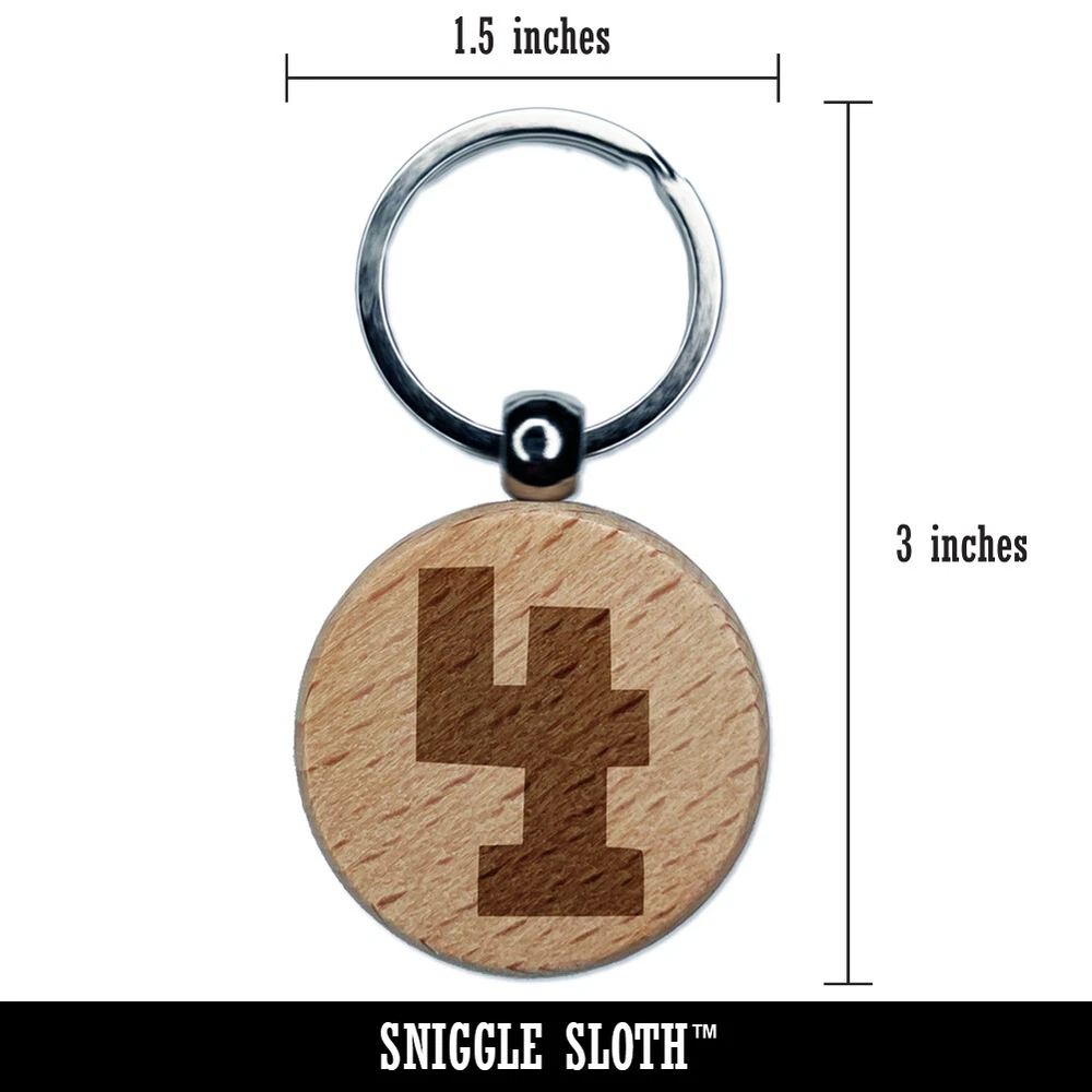 Number 4 Four Fun Bold Font Engraved Wood Round Keychain Tag Charm