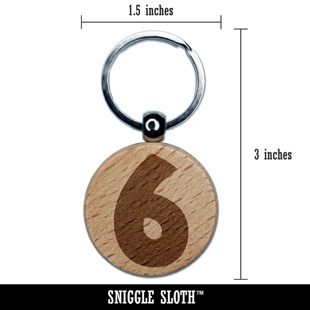 Number 6 Six Fun Bold Font Engraved Wood Round Keychain Tag Charm
