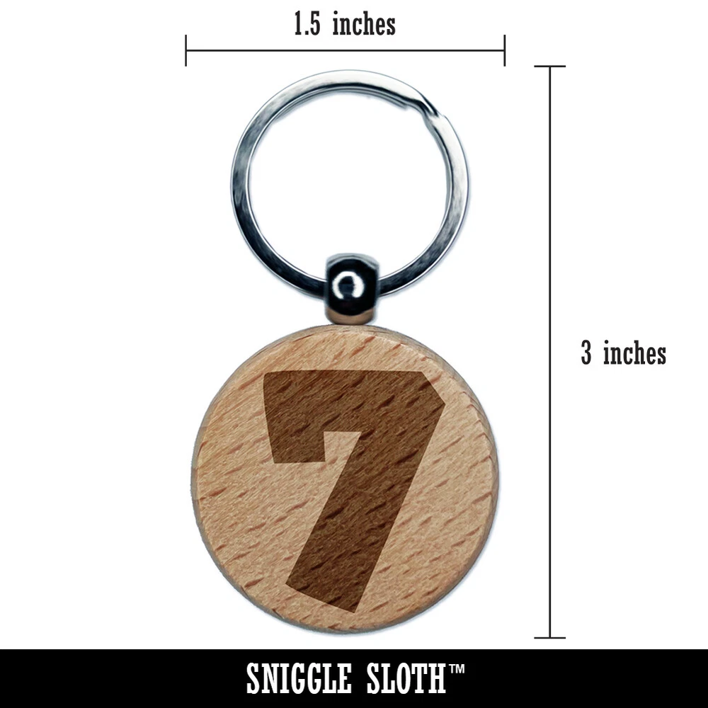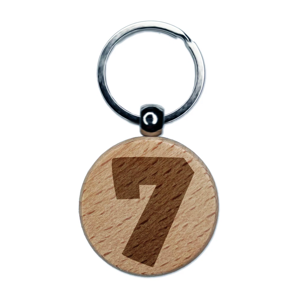 Number 7 Seven Fun Bold Font Engraved Wood Round Keychain Tag Charm