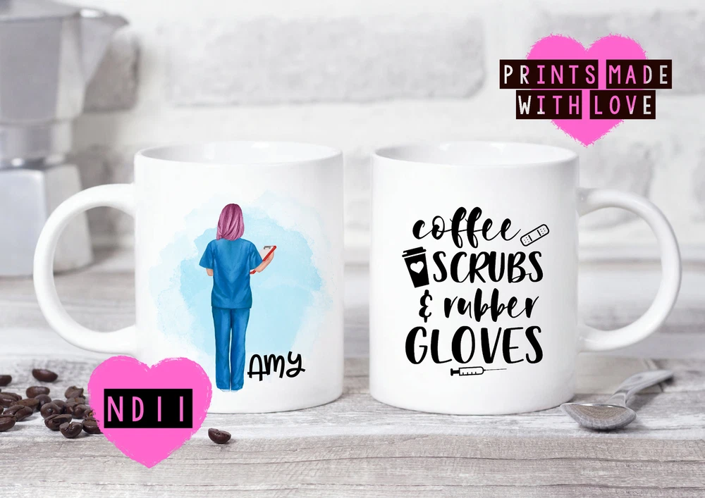 Nurse Gift Nurse Mug Coffee Scrubs & Rubber Gloves Doctor Gift Surgeon Friend Product Details.. This high quality 11oz. ceramic white mug has a premium hard coat that provides crisp and vibrant color reproduction sure to last for years. Perfect for all hot & cold beverages. The highest quality printing possible is used. It will never fade no matter how many times you wash it. Material: 100% Ceramic. Print both sides. Dishwasher and Microwave Safe. High Gloss + Premium White Finish. Printed in the U.S.A. Personalized & Custom. We support personalized and custom mug to add custom, when placing an order, you can add notes to the "order note" in shipping address section. Also you can contact us directly via message. Shipping Info. Ready to ship in 1 to 2 business days, All products are made-to-order and proudly printed in the United States. Shipped by USPS and DHL, You will receive your order in 5-7 days. Replace & Refund. All products are defective during shipping broken, chipped will be replaced free of charge. You are not satisfied with the product, we will refund 100% money to you. If any other issues arise, please do not hesitate to message, we would be more than happy to assist you.