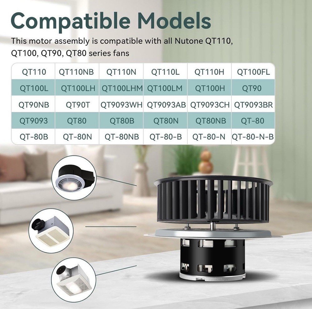 S0696B000 Bathroom Fan Motor For Nutone QT-110N-B QT-9093 QT-90N-B QT-100L. Condition is New. Shipped with USPS Ground Advantage.