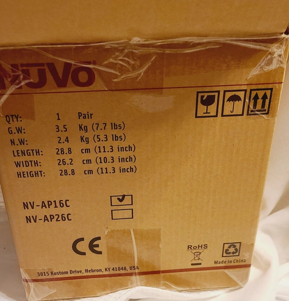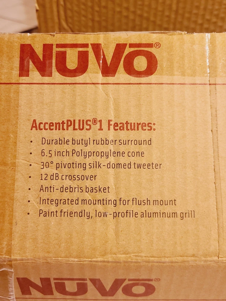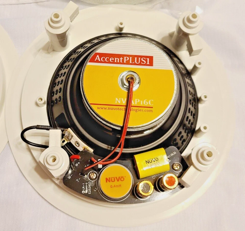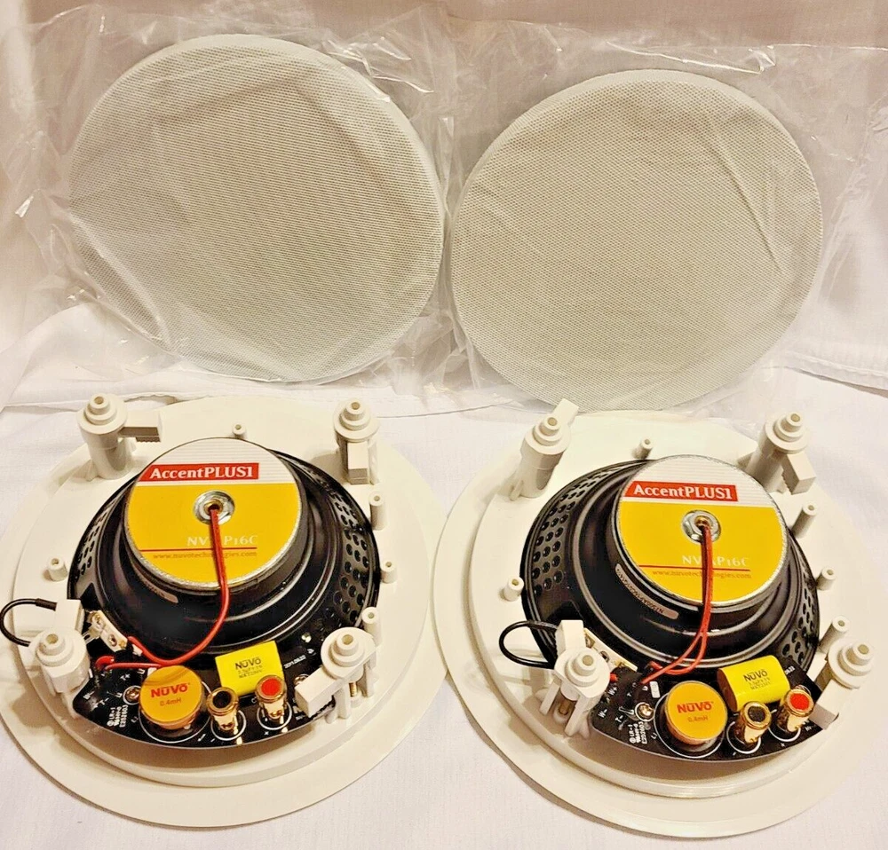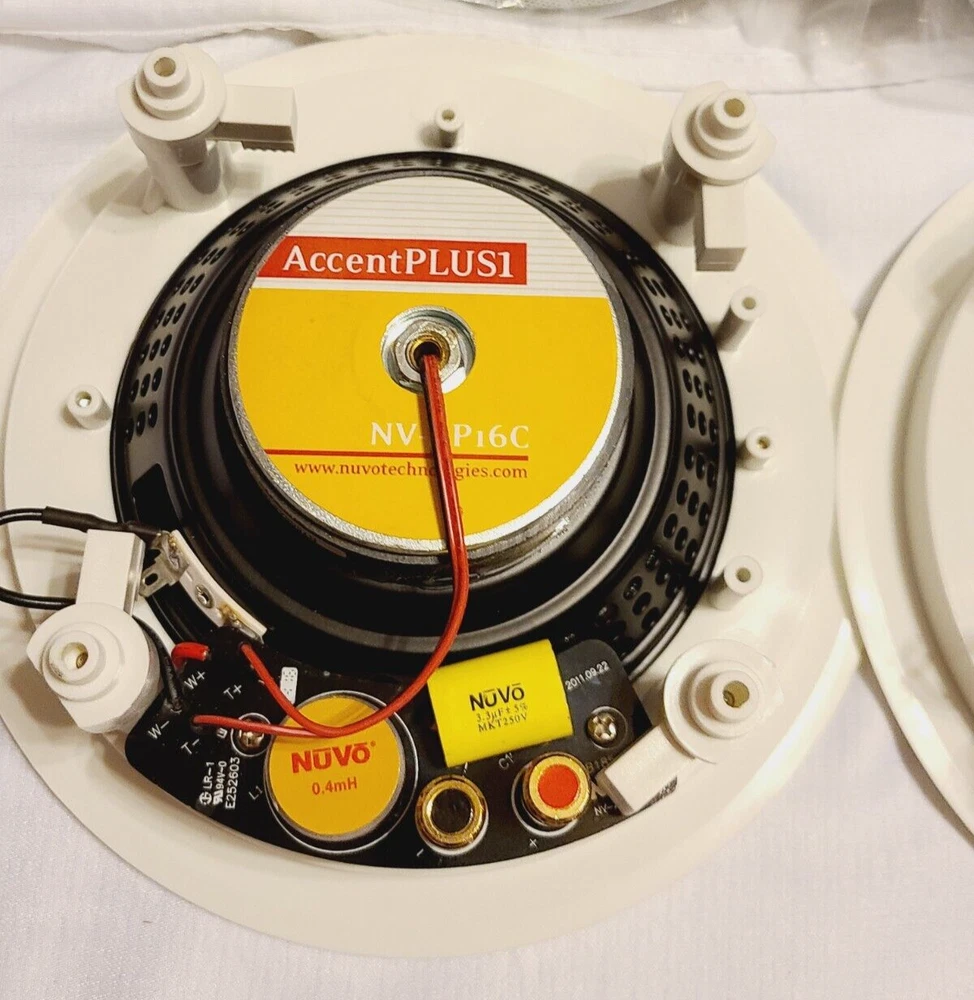 Product Overview: Enhance your home audio experience with this pair of Nuvo AccentPLUS1 NV-AP16C 6.5” In-Ceiling Speakers. Designed for exceptional sound quality and easy installation, these speakers feature durable construction and a sleek, low-profile design. Ideal for home theaters, multi-room setups, or custom installations, they deliver immersive audio with a seamless aesthetic. Key Features: Speaker Size: 6.5 inches Features: 30° pivoting silk-dome tweeters, durable butyl rubber surrounds, and anti-debris baskets for clean operation. Materials: Paint-friendly, low-profile aluminum grills with integrated mounting. Frequency Response: Engineered for rich sound reproduction with a 12 dB crossover. Model Number: NV-AP16C Dimensions (each speaker): Approx. 11.3” x 10.3” x 11.3” (L x W x H) Weight (pair): 5.3 lbs net weight Note: No user manual, but downloadable from Nuvo's official website. Why It’s Desirable: Superior sound performance for home audio enthusiasts. Flexible pivoting tweeters allow for precise sound direction. Easy flush-mount installation with integrated brackets. Trusted Nuvo quality ensures reliability and longevity. Package Includes: Two (2) Nuvo AccentPLUS1 NV-AP16C In-Ceiling Speakers Two (2) Aluminum grills (sealed in bags with faint yellow spots) Original box Disclaimer: ⭐ Shop & Save: Check out my store for more great finds across all categories! Stock up on multiple items to save on shipping. ⭐ Items are shipped same or next business day once payment is received. ⭐ Please be sure to review photos and description for product information. ⭐ All items are in excellent condition unless otherwise described. Flaws will be photographed.