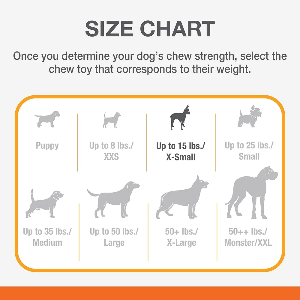 UNIQUE RING AND BONE DESIGN - This textured dog chew toy combines a classic bone shape with a fun inner ring to keep dogs happy and busy DISCOURAGES DESTRUCTIVE CHEWING - Designed for the most determined chewers, this long lasting nylon chew toy promotes healthy, non-destructive chewing habits PROMOTES DOG DENTAL HEALTH - Multi-textured surface helps reduce plaque and tartar buildup as dogs chew MADE IN THE USA - Veterinarian-recommended chew toy is proudly made in the United States SAVORY FLAVOR - Dog chew toy features an irresistible taste throughout that dogs love FOR EXTRA-SMALL DOGS - Size Petite chew toy is intended for dogs up to 15 pounds CHEW TOY DIMENSIONS: Out of package measures 3.81" long x 1.06 " wide x 0.63" high TRUSTED CHEW TOYS WITH HEART & PURPOSE - Every chew toy’s unique shape, individual texture, and gotta-have-it flavor is created with purpose and love to give your dog what they need, when they need it!