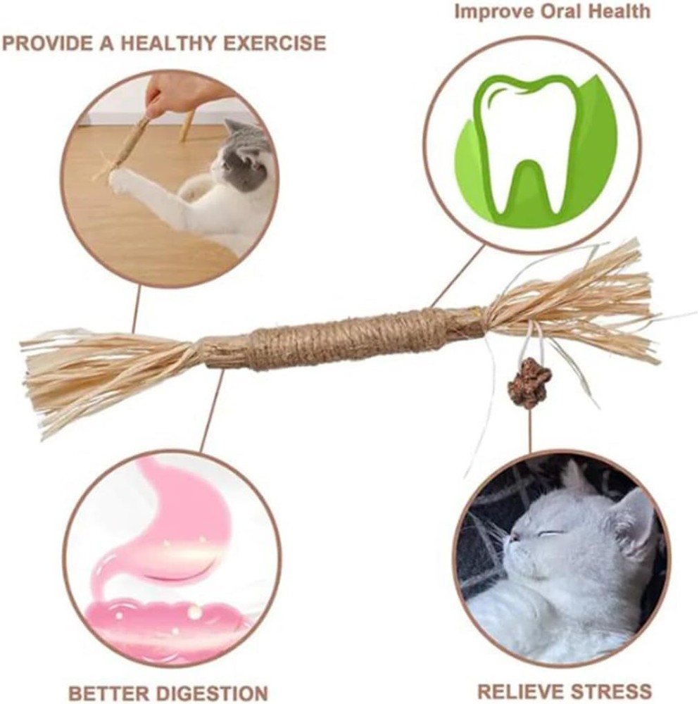 Nylatails Silvervine Dental Stick, Nylatails Cats, Cats Teeth Cleaner Toy 【Pawlovers Kitty Dental Chew Stick】Designed to satisfy your cat's natural chewing instincts, this toy will provide endless entertainment and promote dental health.Pawlovers kitty dental chew stick can works as a chew toy, cat can chew it for fun and at the same time, the stick will clean their teeth. Your pet will not refuse tooth brush anymore! 【Make Cats Happy】Made of hand-woven silver vine sticks (excite cats), bile (improve digestion) and a catnip ball inside, it will excite your cat with its various appealing flavors. Its unique texture and shape makes it paw-some for gnawing, biting, and exploring. 【Pawlovers Dental Chew Stick】Not only does our Cat Chew Toy provide amusement, but it also helps promote healthy teeth and gums. Chewing on the toy helps to reduce tartar buildup, supporting your cat's oral hygiene. 【Protect Cat's Oral Health】Pawlovers Cat Chew contains valuable fiber that provides a natural solution for removing hairballs while improving your cat's digestive and dental health. Chewing the hand-braided silver vine effectively removes tartar, resulting in a significant improvement in oral health. 【 Great Pawlovers Cat Toy】This Cat Chew Toy is the purr-fect addition to your cat's toy collection. Watch as your furry friend pounces, bats, and chomps on this engaging toy, providing both mental and physical stimulation.It's also a great way to redirect your cat's attention from destructive chewing behaviors. Product Description Introducing our irresistible Kitty Dental Chew Toy for your feline friend's playtime! Let your cats brush their own teeth and keep their breath fresh! PawLovers Kitty Dental Chew Stick can effectively clean cat's teeth, reduce the possibility of the abrasion of their teeth and keep their dental health. Features: ● Made from Safe& Non-Toxic Natural Wood ● Easy to hold paw pads ● Easy to clean,can be washed directly with water and soap. Description: Material:Natural Wood Color:as picture show Weight: 15 g Size:8.6“L x 0.6”W x0.6“H inches Package Includes: 1/3/6 * Pcs Dental Chew Stick Notes: 1.Due to the light and screen setting difference, the item's color may be slightly different from the pictures. 2.Please allow slight dimension difference due to different manual measurement.
