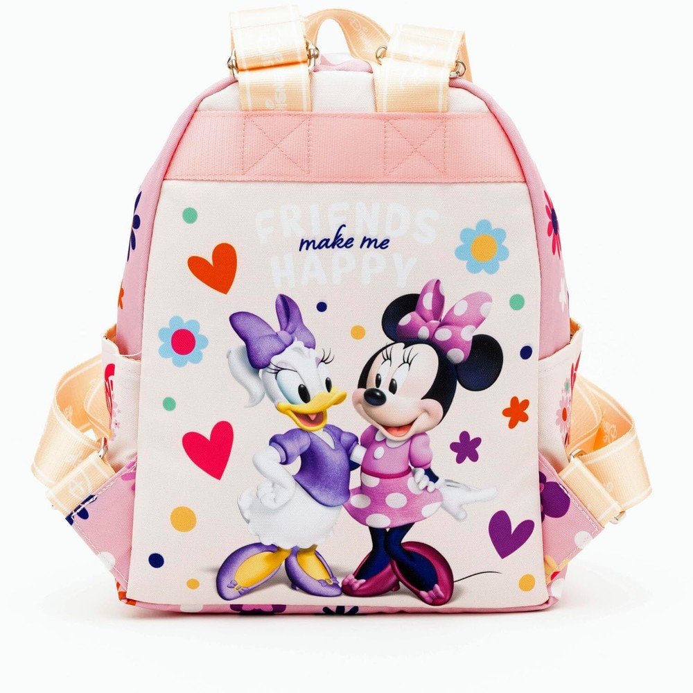 Backpack measures 13"H x 9.5"W x 4.5"D, Front Pocket measures 9.5"W x 5"H x 1.25"D, 9.1 liter capacity Made of Polyester with Satin Nylon Lining and Metal Hardware Features Zipper Main Compartment and 2 Side Pockets Adjustable Shoulder Straps and a Top Carry Handle Official Licensed Product