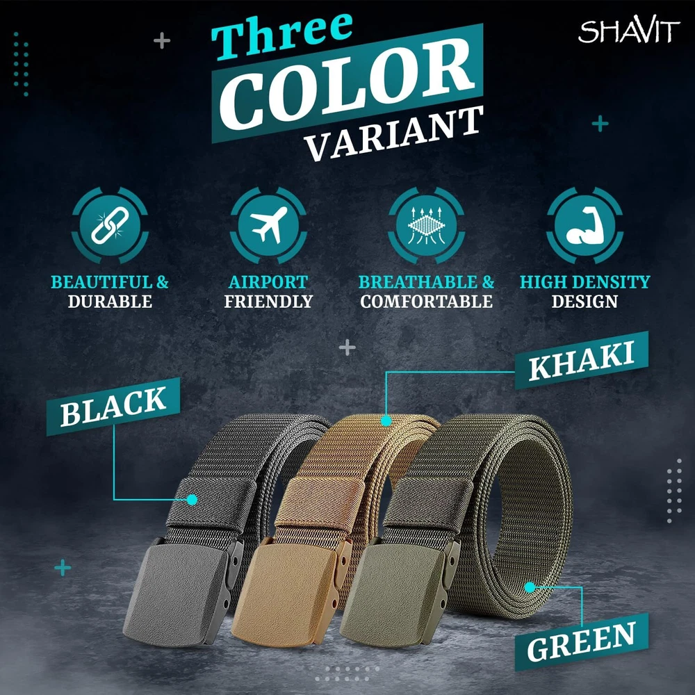 Tactical Belt, Great for Outdoor Hiking, Fishing, Hunting, Work and Every Day Use Nylon Canvas Breathable Military Tactical Men Waist Belt With Plastic Buckle Airport Friendly - Metal-Free Plastic Cam Buckle Belts for Men and Women with No Metal Plastic Buckle for Work and Travel Adjustable Size - Hole-less belt means you can adjust the length freely