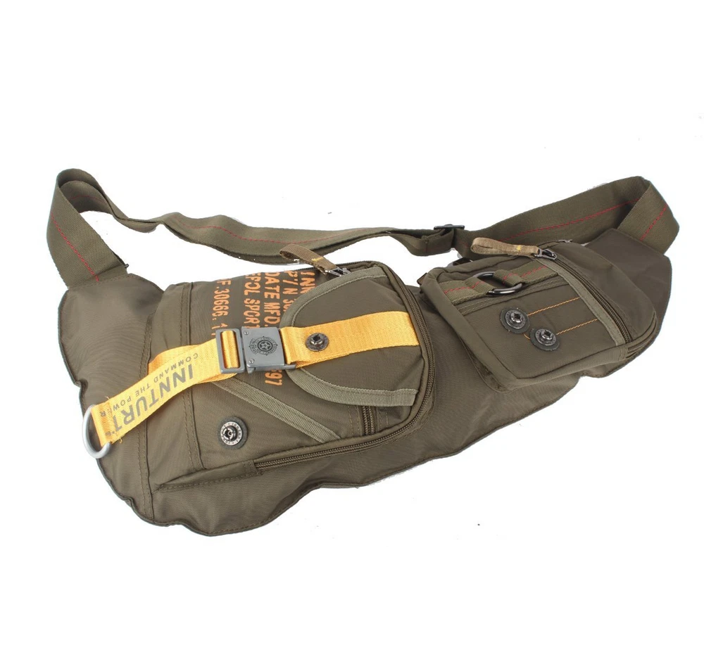 Bag is made from light weight nylon material, durable and waterproof. Fits standard iPad and tablets; Come with multiple convenient pockets, good for daily use or any outdoor activities. MULTI COMPARTMENTS. New Moon shape with many pockets for storage and organization. Main compartment fits 10-in tablets and medium camera perfectly. Front pockets for phone, wallets,gear and small accessories. Back pocket for pen, small notebooks. Also including points to clip carabiners. LIGHTWEIGHT (0.9 pounds) but STRONG. A true friendly sling bag, really good for carrying in sports, travel, hiking, running, cycling or day use. DURABLE and WATERPROOF. The sling bag is made from highly rip and water resistant nylon, provide strengthen and long-lasting performance with minimal weight. Useful and Effective. With this bag, no longer to store all your belongings in winter coat pockets or in summer pants pockets, walk comfortable and let your hands free. Dimensions are 9.4 x 22 x 4.3. Strap adjustable, suitable for men and women.