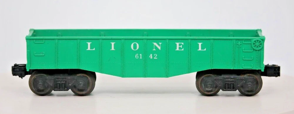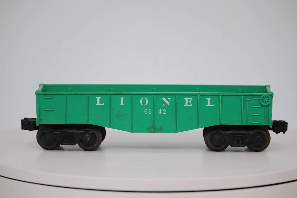 O Gauge Lionel #6142 Green Gondola Train. SKU#007589 Look closely at the pictures to see further details. We ships USPS PLEASE see photos for detailed condition!! There may be pieces that are missing or broken including, but not limited to, couplers, brake wheels, steps, ladders, railings, etc. May need detailed cleaning. PLEASE LOOK AT THE PHOTOS CAREFULLY BEFORE PURCHASING!! If you are purchasing more than one item from us and would like combined shipping, PLEASE request an adjusted invoice from us while still in the cart and BEFORE paying. Ebay does not usually calculate combined shipping accurately and you might get overcharged. Please be aware that when we photograph items, we use lighting that will show the details well. Although we try to present the product as accurately as possible, the lighting may affect the overall look of the item by appearing lighter/darker or possibly a different hue than the actual item. Depending on the type of lighting you have in your home, there may be some differences between the photos and the actual item. If this is a concern of yours, please feel free to request additional photos made in natural lighting or ask for a more detailed description of the item PRIOR TO PURCHASE! PLEASE NOTE: We greatly appreciate your interest in our item for sale. We look forward to a pleasant, quick and satisfying transaction for everybody, so please note the following information before bidding. Thank you! ITEM DESCRIPTIONS: * We will try to describe items well and provide plenty of photos. Please review these carefully before bidding or purchasing. * Only the items pictured and described are what you will receive when purchased. * We will occasionally offer an item clearly marked "AS-IS". This means that we are not sure if it works because we are unable to test it for whatever reason. We will offer these at a discounted price then a similar "working" item. It is possible that these items will work fine, but it also is possible that these items are more useful for their parts. Please only bid on or purchase these items if you are well aware of this, as we will only provide refunds of actual item price (no shipping cost refunds) for these items. * If you have any questions that aren't addressed by the descriptions or photos, please feel free to ask before you bid. SHIPPING: * We usually do not offer shipping to international addresses, but ARE WILLING TO TAKE CONSIDERATIONS. * We try to pack items as carefully as possible, but damage may occur during shipping. If you receive an item that was damaged in shipping, please contact us and we will work with you to resolve the problem. * We will combine shipping costs for all items the same buyer purchases from us within 2 days. Please wait to pay for items until you're done shopping with us. Please contact us if you're expecting to buy more items from us, or to have us adjust the shipping costs. * We will usually ship items out within 24 hours of payment being received Sunday through Friday at noon. We will notify the buyer if there will be a delay in shipping for some reason. Please allow additional time for holidays and weekends when the post office is closed. If payment is received after noon (EST) on Friday, the item might not be shipped until the following Monday. * We do try to recycle shipping materials as much as possible. RETURNS: We abide by eBay's Money Back Guarantee. We definitely want our customers to be happy with their purchase! You may return an item within 30 days of receiving it with the following guidelines: * If the item is defective or damaged (unless we clearly marked the listing "AS-IS"), the buyer will receive a full refund after the buyer returns it and it is received by us. Customers who falsely claim their item is defective, damaged, or not as described in order to receive a full refund and free return shipping will be permanently blocked from making future purchases from us. * If the item is as described (including "AS-IS" items) and the buyer decides for any other reason than defective/damaged to return it, only the actual price of the item will be refunded once it has been returned and it is received by us. The buyer will be asked to pay all original and return shipping charges. This includes all reasons other than defective/damaged, including wrong size, wrong type, changed mind, etc. All "AS-IS" items will fall into this category of return. Please make sure the item is what you want before purchasing it. * Please contact us before initiating a refund request. FEEDBACK: We always leave feedback at the end of transaction. We consider the transaction to be over when we receive feedback from the buyer confirming the item arrived satisfactorily. If you are unsatisfied with your purchase please contact us before leaving neutral or negative feedback. WE APPRECIATE POSITIVE FEEDBACK IF YOU ARE SATISFIED WITH YOUR PURCHASE! THANK YOU FOR YOUR INTEREST IN THIS ITEM! Look closely at the pictures to see further details. We ships USPS PLEASE see photos for detailed condition!! AC PLEASE LOOK AT THE PHOTOS CAREFULLY BEFORE PURCHASING!! If you are purchasing more than one item from us and would like combined shipping, PLEASE request an adjusted invoice from us while still in the cart and BEFORE paying. eBay does not usually calculate combined shipping accurately and you might get overcharged. Please be aware that when we photograph items, we use lighting that will show the details well. Although we try to present the product as accurately as possible, the lighting may affect the overall look of the item by appearing lighter/darker or possibly a different hue than the actual item. Depending on the type of lighting you have in your home, there may be some differences between the photos and the actual item. If this is a concern of yours, please feel free to request additional photos made in natural lighting or ask for a more detailed description of the item PRIOR TO PURCHASE! PLEASE NOTE: We greatly appreciat