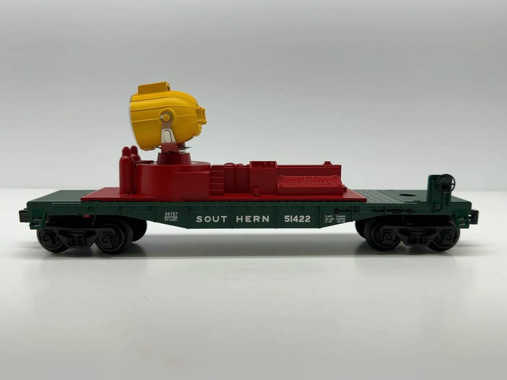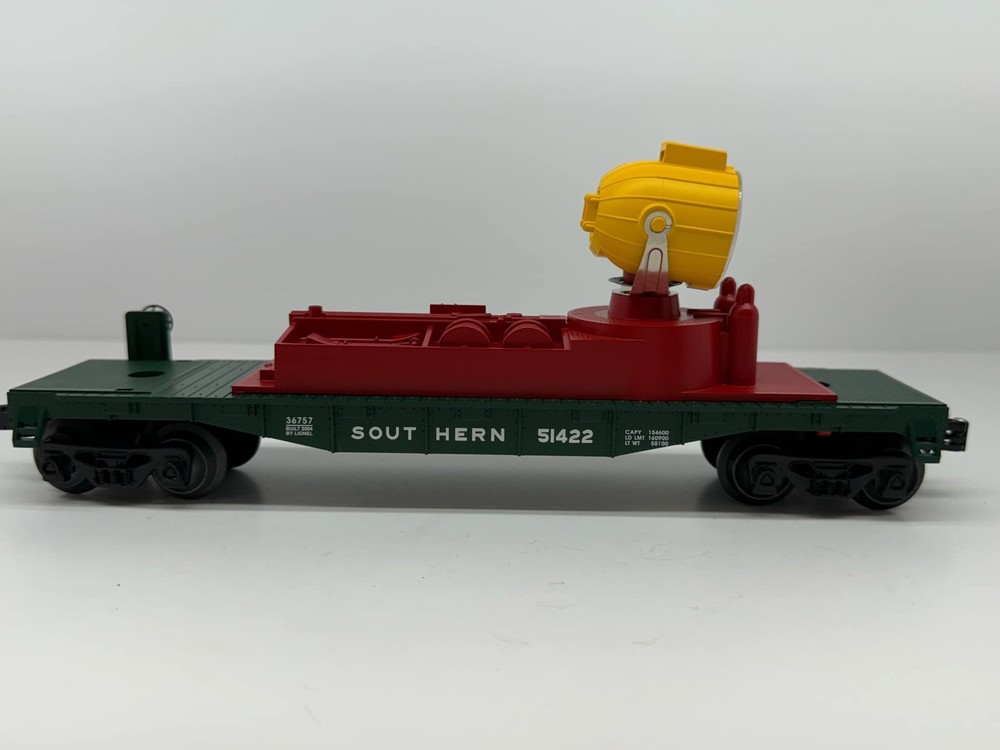 O Gauge Lionel Southern Searchlight Car Train #6-36757. The condition is Excellent. Please refer to pictures for details, pictures are of the actual item you are buying. I will be listing many other Trains model. Please view my other items for sale if interested. Buy it now. I will ship immediately with tracking # anywhere. We can put inside the Birthday gift card and indicate your name on it, just text me, it's free for you. Feel free to email me with any question you may have. Thank you, and good luck to all.
