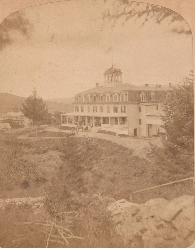 IMPORTANT: We are always happy to combine shipping. In order for us to do so, please do not pay until we send you an invoice for multiple auctions won, or if using "Buy it Now", please add the items to your cart and click on "request total". For your consideration is a nice larger size, curved stereoview titled "Oak Hill House, Littleton, N.H.". This is a great view looking across the landscape at the hotel (with people on the porch) and another building on the left side of the image. Note the horse and rider stopped in front of the entrance. This has a nice 3D effect. The view was photographed and published by G. H. Aldrich & Co., Littleton, N. H. There is scribbling in blue crayon on the verso, soft corners, and overall soiling. Please view the enlargeable scans carefully and contact me with any questions Over the coming months we will be thinning out our collection focused on the mountains of the Northeast. This collection includes the White Mountains (New Hampshire), Green Mountains (Vermont), Adirondacks (New York), Mt. Katahdin, Mt. Monadnock, and other miscellaneous mountains in the region. Also items concerning the Appalachian Trail. We will be listing hundreds of White Mountain stereoviews depicting towns, hotels, Mount Washington, the Cog railway, etc.. If you are looking for a particular view by Kilburn, Soule, Weller, Franklin White, or any of the period photographers feel free to inquire whether we have one to offer. We will also be listing many books (including guides and early histories), maps, photos, Appalachian Mountain Club items, etc.. Please check our auctions regularly and if you are seeking a particular item for your collection contact us and we will let you know if we will be selling one.
