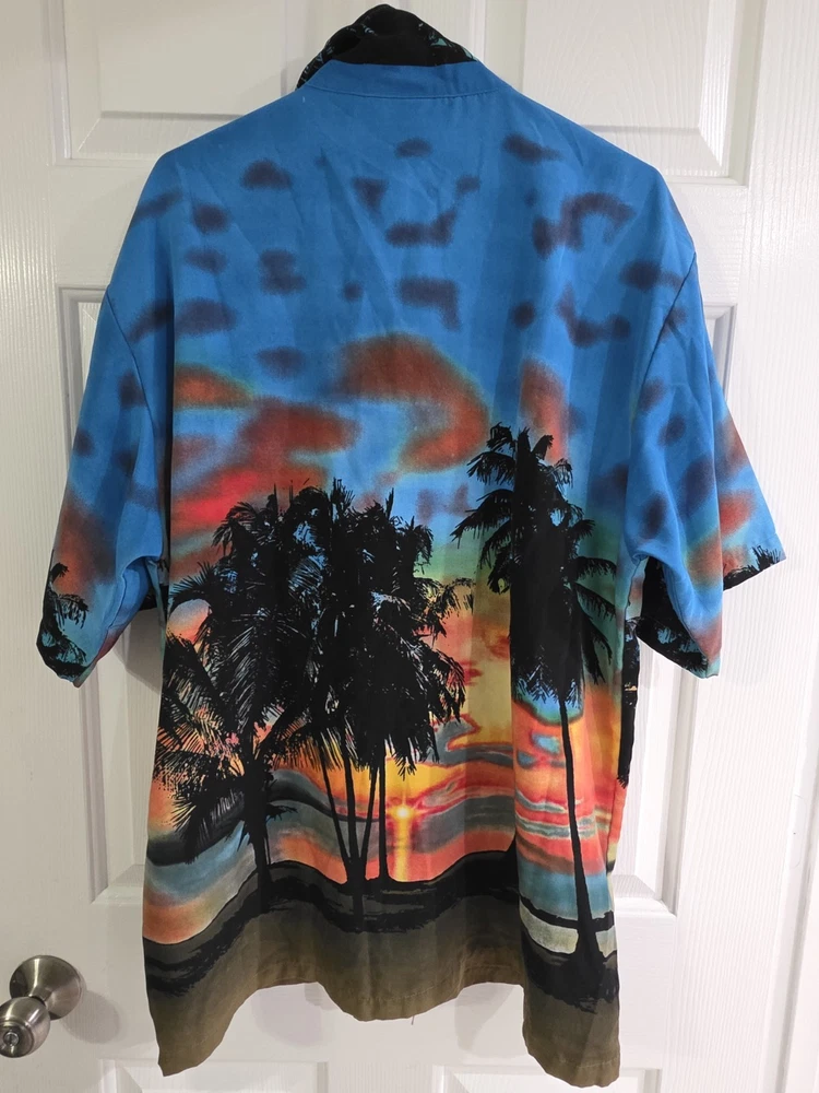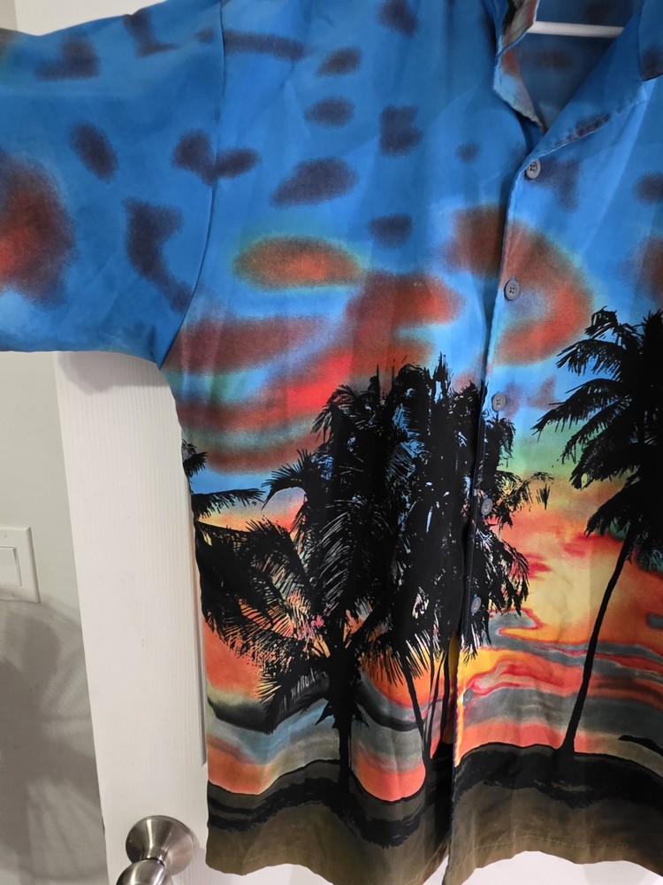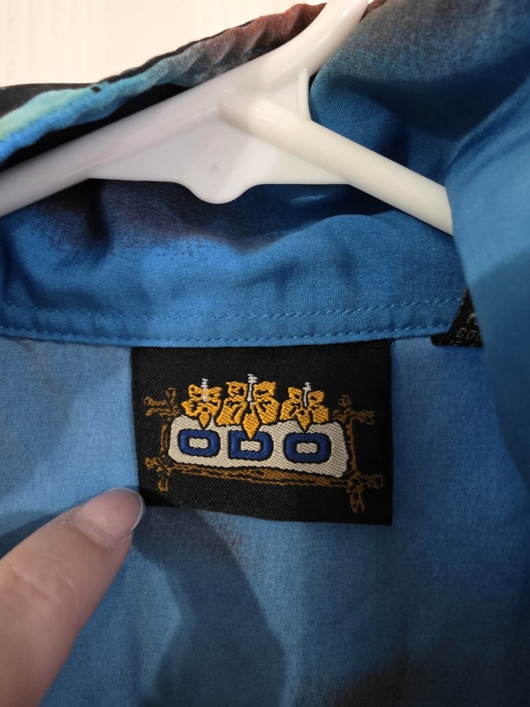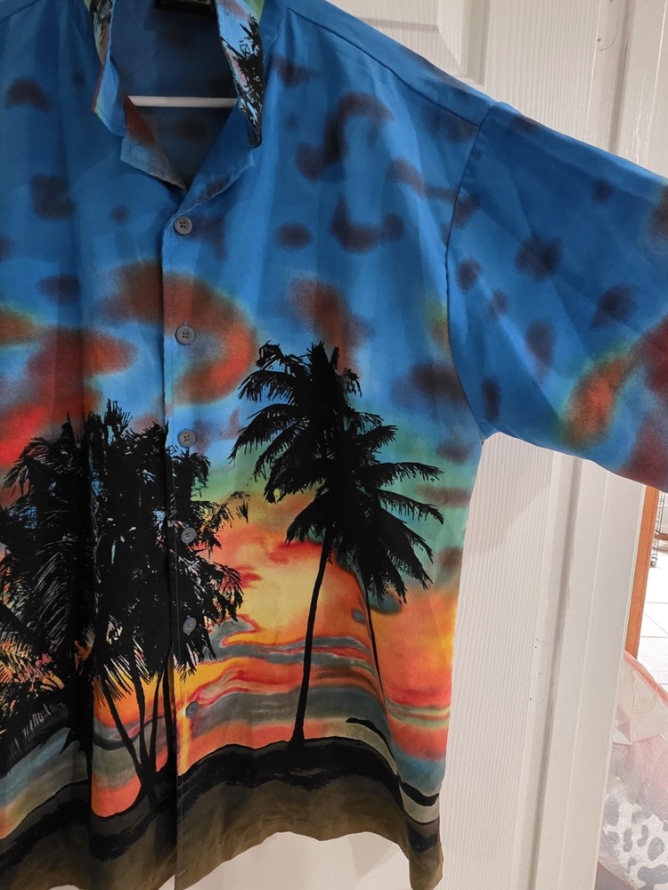 Explore your style with the ODO XL Button Down Shirt, featuring a distinctive palm tree pattern that adds a touch of paradise to your wardrobe. The blue and orange graphic print design is perfect for various occasions, whether you're out for a casual event, attending a party, or traveling and want to stand out with a vibrant touch. Crafted for comfort, this shirt comes with short sleeves, a spread collar neckline, and a convenient button closure. Made from a blend of polyester and rayon, the fabric is both lightweight and breathable, ensuring you stay cool and comfortable throughout the day. The shirt is also machine washable, making it a practical addition to your collection. Embrace the blend of functionality and style with this unique piece.